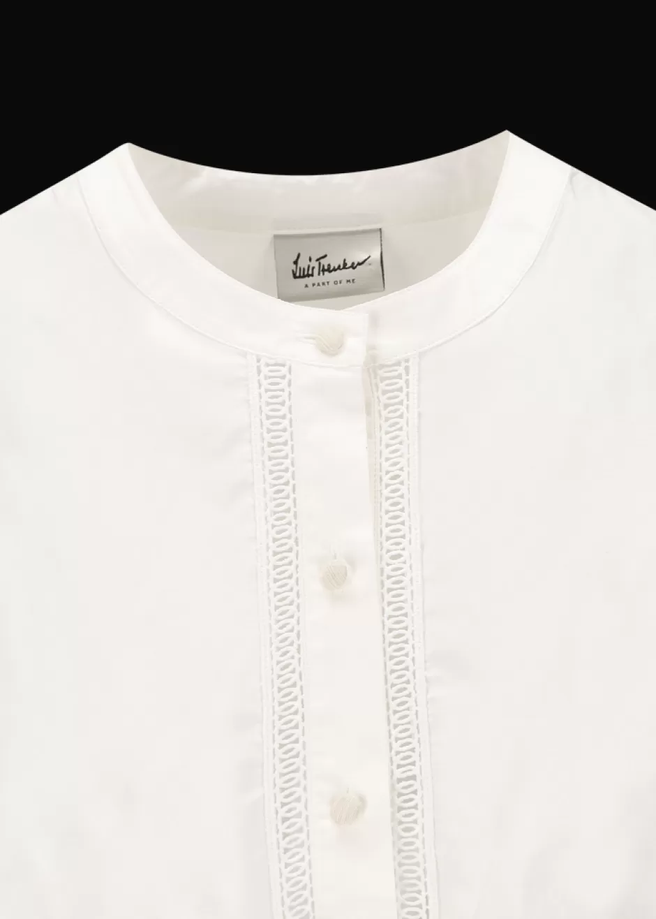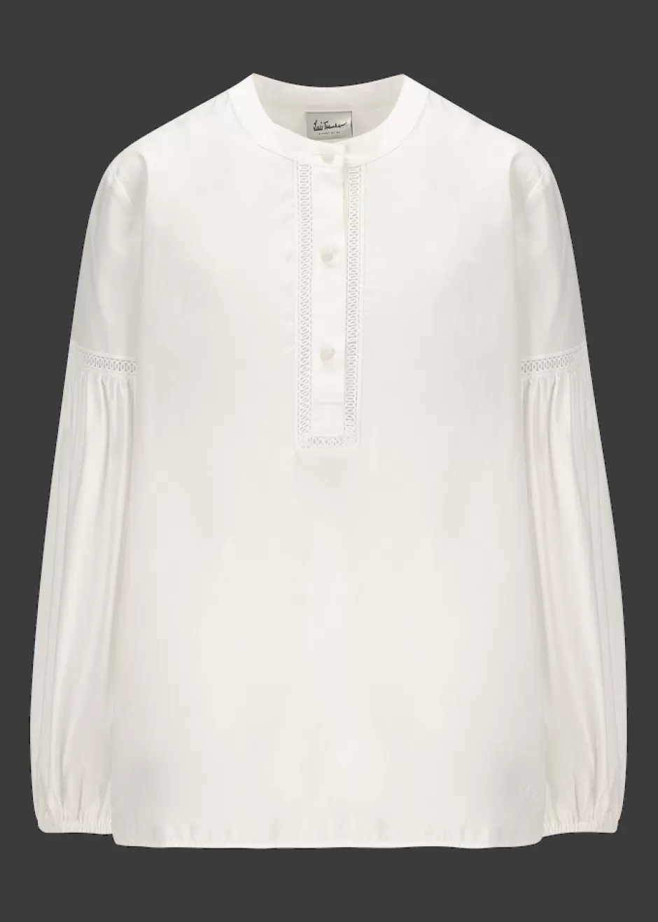 - Diese Bluse im Comfort Fit mit langen Ballonärmeln, Rundhalsausschnitt und kurzer Knopfleiste besteht aus reiner Baumwolle. Ihre Bordüre mit Lochstickerei an Knopfleiste und Ärmeln, sowie die Knöpfe aus echtem Perlmutt machen sie zu einem eleganten Basic.
