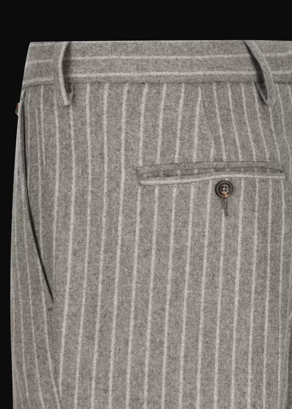 - Diese lange Hose im Regular Fit mit etwas weiterem Bein und Saumumschlag besteht aus reiner Schurwolle mit Nadelstreifen. Ihre abnehmbare dekorative Kette an den Gürtelschlaufen ist ein originelles Detail, welches dieses Modell auszeichnet.