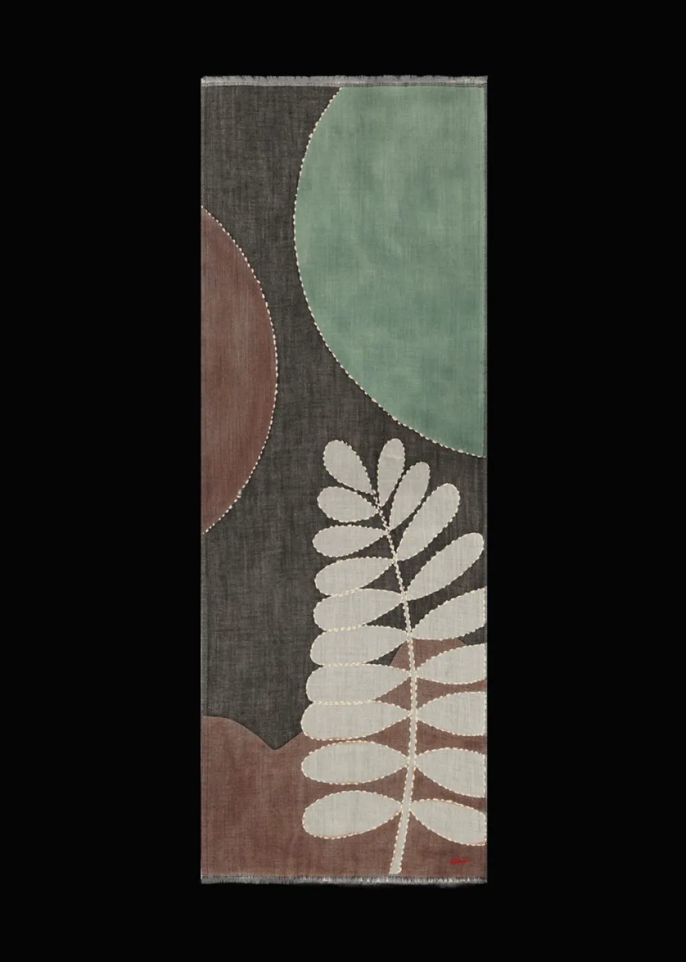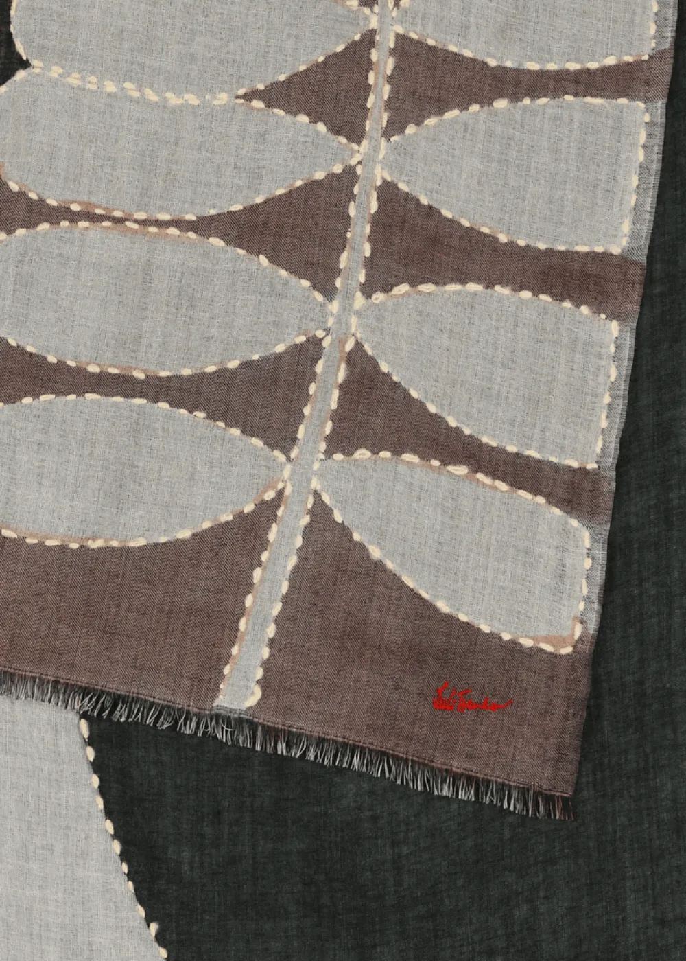 - Dieser Schal aus reiner Wolle überzeugt mit seinem aus geometrischen Formen und floralen Elementen bestehenden Muster, sowie handgestickten Details.