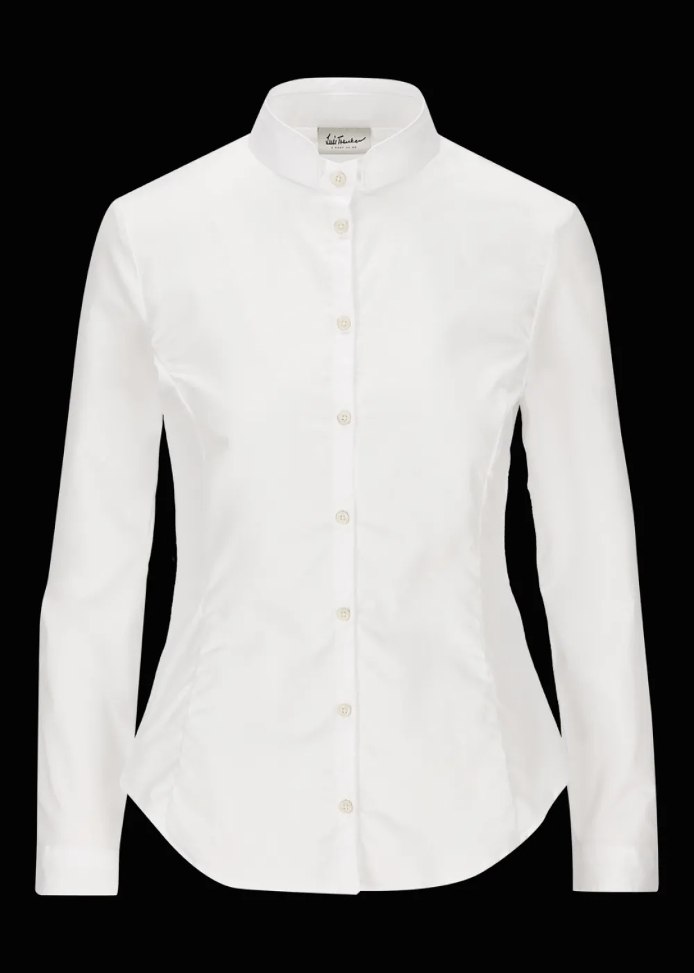 - Diese Bluse im Slim Fit wirkt schlicht, doch bei genauerem Hinsehen offenbart sich ihr Wiedererkennungsmerkmal: der doppelte Stehkragen. Die seitlichen Nähte betonen die Figur und verleihen der Bluse ihren femininen Charakter.