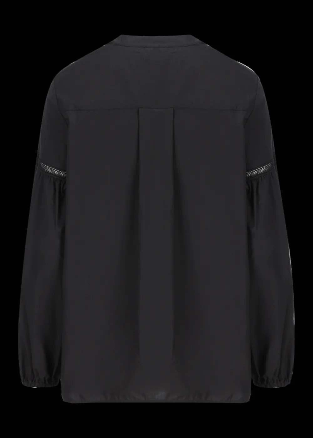 Knopfleiste: Kurze Knopfleiste - Besonderheiten: Feminine Ballonärmel mit elastischen Bündchen, zarte Lochstickerei, mit Stoff überzogene Knöpfe