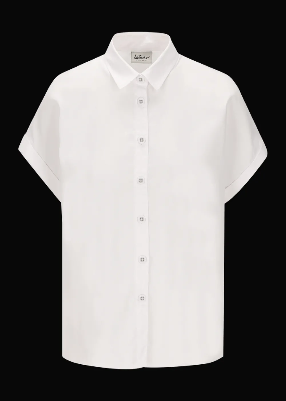 - Diese kurzärmelige, kastenförmige Bluse im Comfort Fit mit Kentkragen und durchgehender Knopfleiste besteht aus reiner, strukturierter Baumwolle. Die mit Stoff überzogenen Knöpfe und der Ärmelumschlag verleihen ihr eine besonders feminine Note.