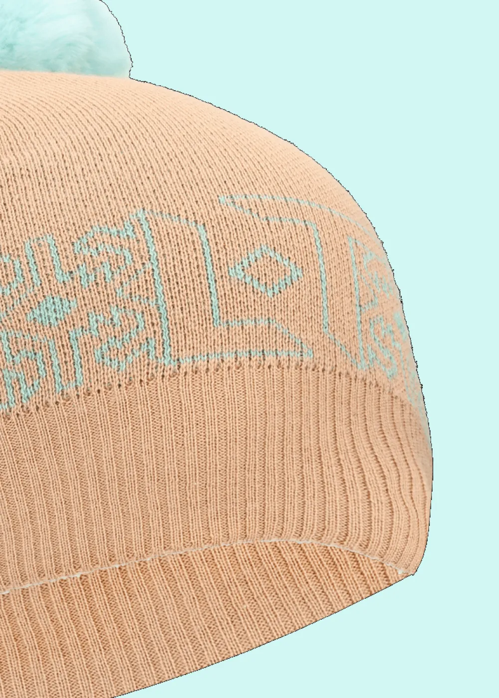 - Bommel aus echtem Kaninchenpelz, Saum im Rippstrick