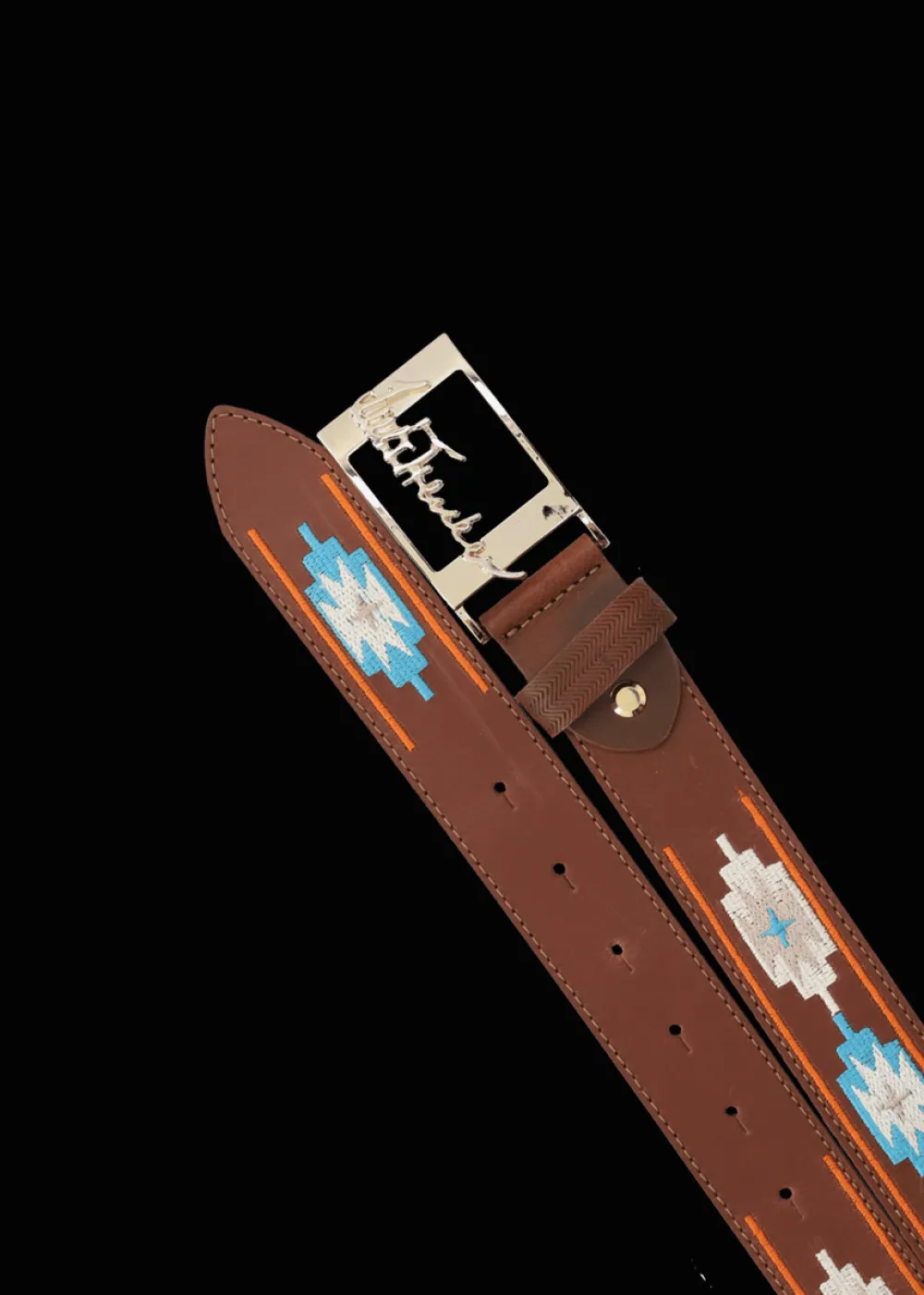 - Dieser zeitlos braune Gürtel aus echtem Glattleder mit charakteristischer, metallischer Kastenschnalle mit Logo erhält durch die Stickereien im Ethno-Stil einen besonderen Farbtupfer.