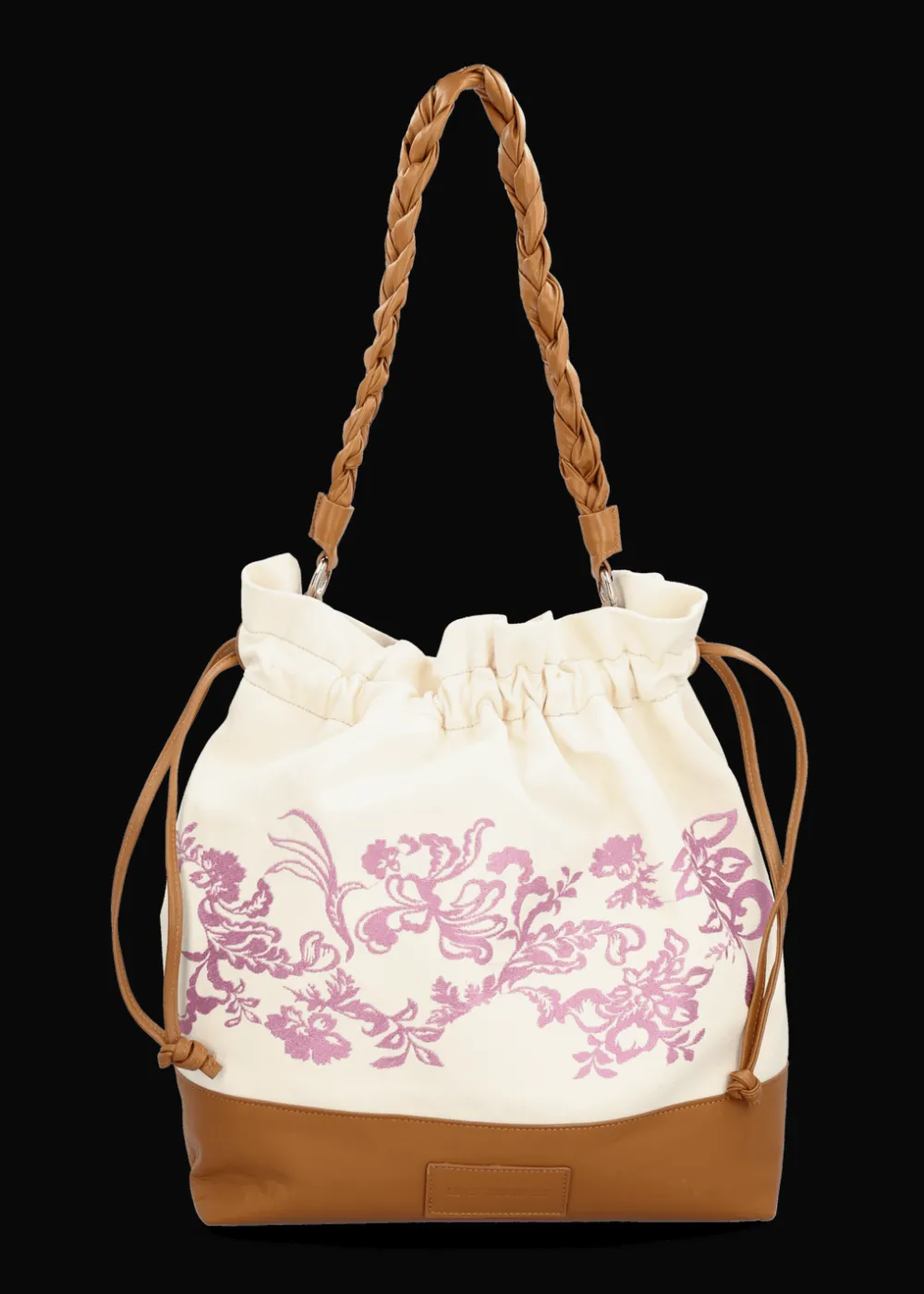 - Diese Beuteltasche aus Baumwollcanvas hat einen praktischen Magnetverschluss und kann zusätzlich mit zwei seitlichen Lederbändern zugezogen werden. Ihr Boden ist mit Echtleder verstärkt und ihr abnehmbarer Schultergurt besteht aus geflochtenem Leder. Ein besonderes Highlight ist außerdem ihre aufwändige florale Stickerei in Kontrastfarbe.