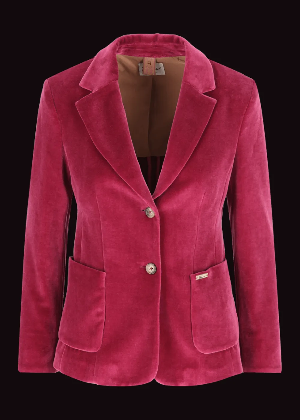 Besonderheiten: Edel schimmernder Samt in Jersey-Qualität, extra Tragekomfort, personalisiertes Jacquardband als Jackenaufhänger, Logoplakette in Hornoptik an der linken Tasche