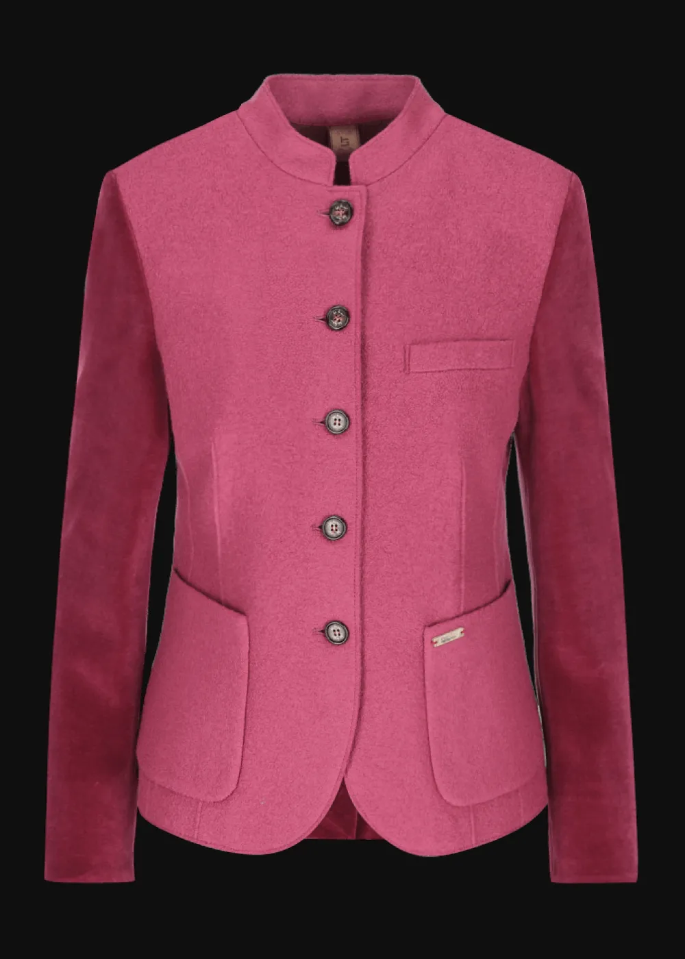 Besonderheiten: Hochwertiger Materialmix aus Walk und Samt-Jersey, extra Tragekomfort, femininer Schlitz am Rücken, personalisiertes Jacquardband als Jackenaufhänger, Logoplakette in Hornoptik an der linken Tasche - Unser Model Chantal ist 1,78 m groß und trägt die italienische Größe 42.