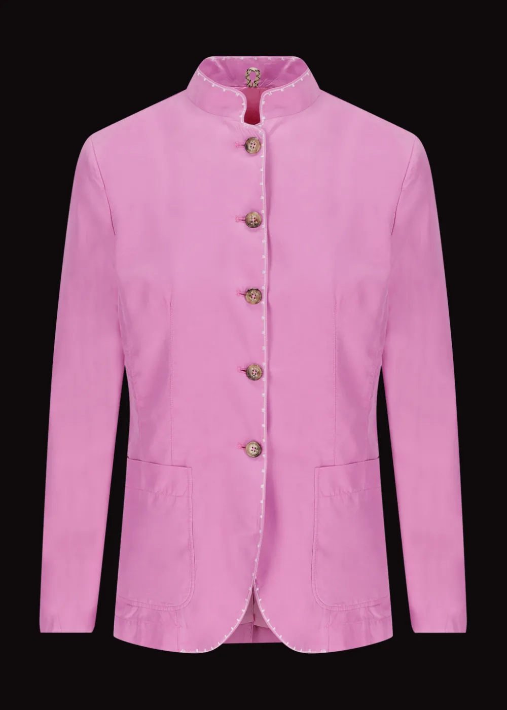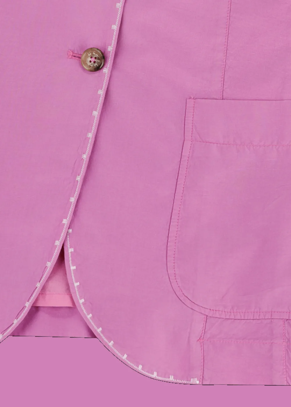Futter: Gefüttert in reiner Baumwolle - Besonderheiten: Stückgefärbter Seiden-Baumwoll-Mix, dekorative Stickerei in Kontrastfarbe an Kragen und Knopfleiste, Logoplakette an der linken Tasche