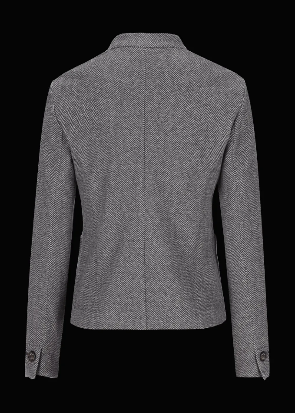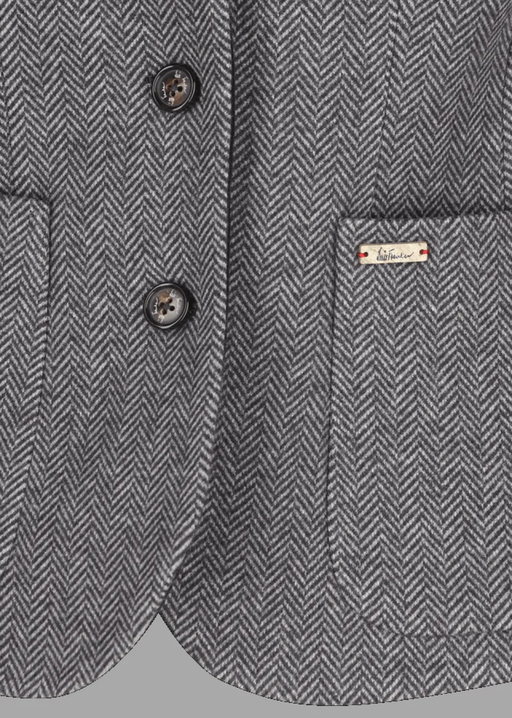 - Dieser halbgefütterte Blazer im Regular Fit mit Stehkragen und einreihiger 5-Button-Front besteht aus einer angenehmen Baumwoll-Viskose-Mischung in Jersey-Qualität, die maximalen Tragekomfort verspricht. Das zeitlose Fischgrätmuster, die Knöpfe aus Bio-Horn und die Details aus Cord verleihen dem schlichten Modell die nötige Raffinesse.