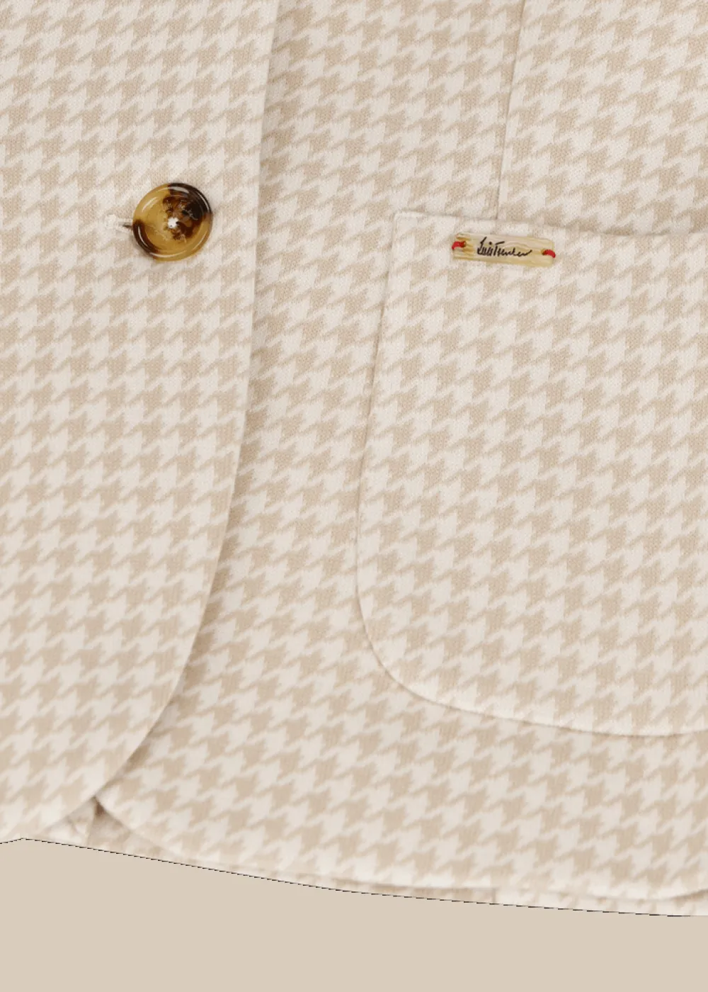 - Dieser halbgefütterte Blazer im Regular Fit mit Reverskragen besteht aus einem angenehmen Baumwoll-Viskose-Mix mit Stretchanteil und Hahnentrittmuster. Er ist mit zwei Knöpfen aus Bio-Horn verschließbar und hat zwei aufgesetzte Taschen.