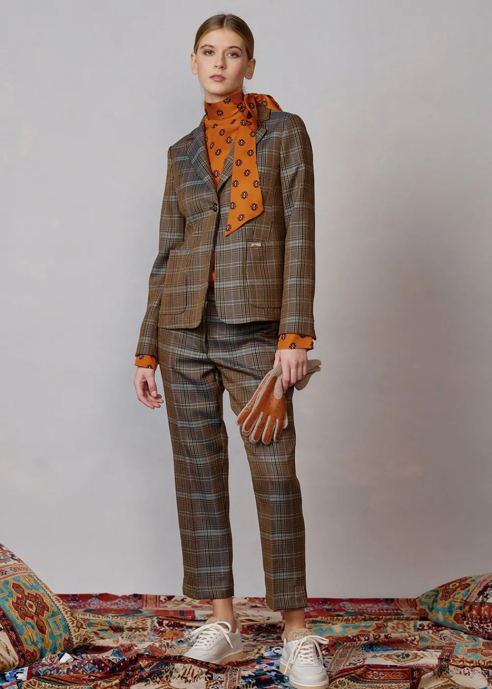 - Dieser halbgefütterte Blazer im Regular Fit mit Reverskragen besteht aus einem exklusiv für Luis Trenker gefertigten, reinen Schurwollgewebe mit Hahnentrittmuster. Sie ist mit einem einzigen Knopf aus Bio-Horn verschließbar und hat zwei aufgesetzte Taschen.