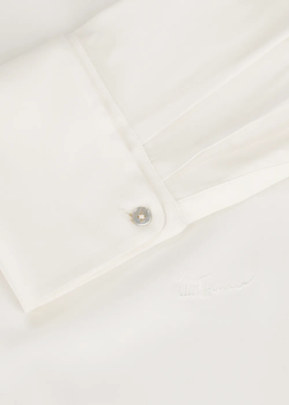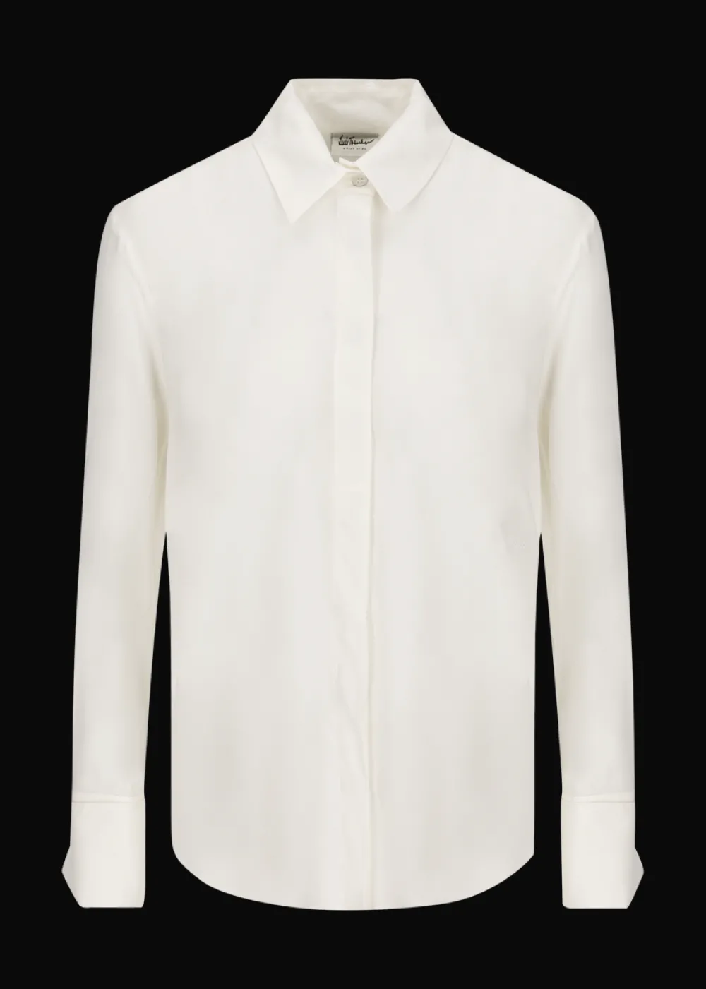 Knopfleiste: Durchgehende, verdeckte Knopfleiste mit Knöpfen aus echtem Perlmutt - Besonderheiten: Stückgefärbtes Seidenmischgewebe, markante Manschette