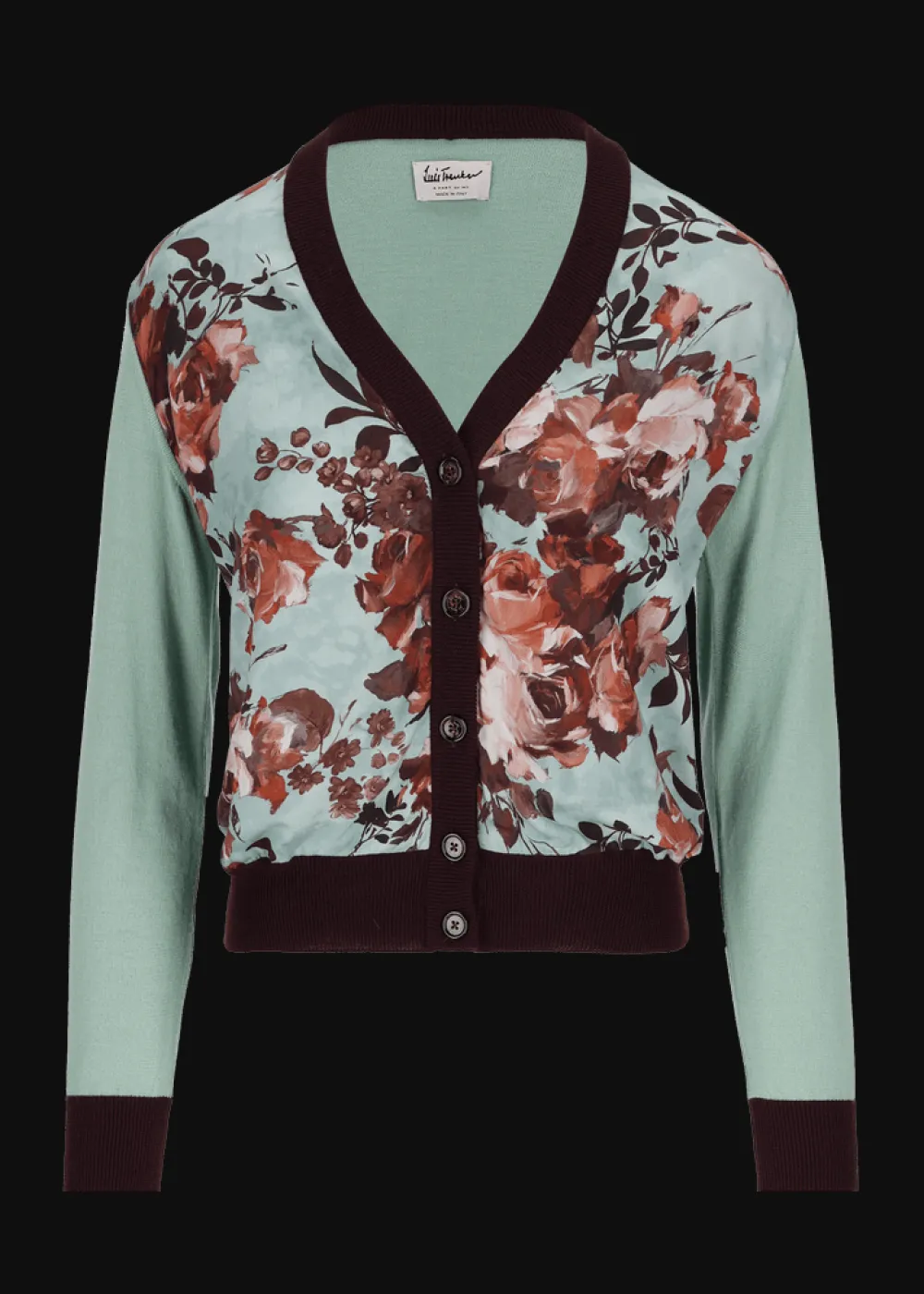 - Dieser Strickcardigan im Regular Fit mit V-Ausschnitt und Knöpfen aus Bio-Horn besteht an Ärmeln und Rücken aus reiner, glatt rechts gestrickter Merinowolle. An der Vorderseite befindet sich ein Kontraststoff aus reiner Viskose mit floralem, exklusiv für Luis Trenker entworfenem Print.