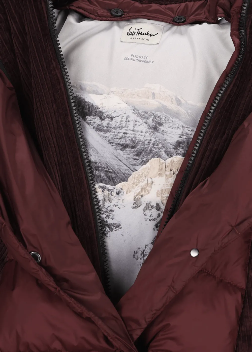 - Dieser gesteppte Daunen-Mantel aus Nylon im Comfort Fit mit Kapuze ist ein winterliches Lieblingsteil zum Wohlfühlen: Mit seinem hochgeschlossenen Cord-Innenteil an der Vorderseite, das Du durch einen Reißverschluss im Handumdrehen heraustrennen kannst, hält er Dich nicht nur warm, sondern sieht auch richtig edel aus. Weitere Highlights: Die verdeckten Druckknöpfe, die Cordeinsätze an den seitlichen Eingriffstaschen, der praktische Zwei-Wege-Reißverschluss, die wasserdichte Funktion und das Innenfutter mit exklusiv für Luis Trenker designtem Landschafts-Print.