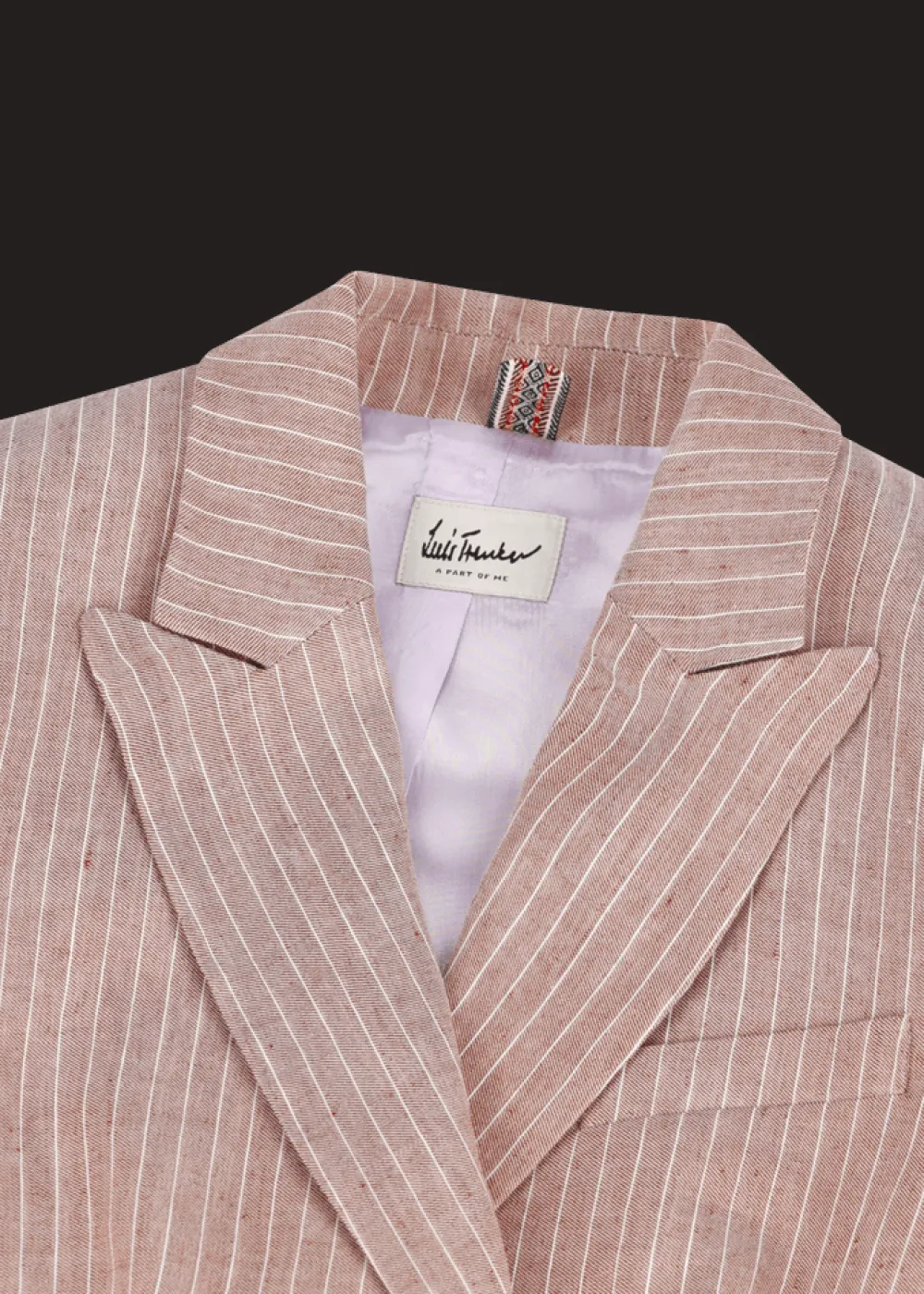 Futter: Halbgefüttert - Besonderheiten: Hochwertige Mischung aus den Naturfasern Leinen und Baumwolle, Rückenschlitz, Band im Folklore-Look als Jackenaufhänger und innen am Handgelenk, Logoplakette in Hornoptik an der linken Tasche