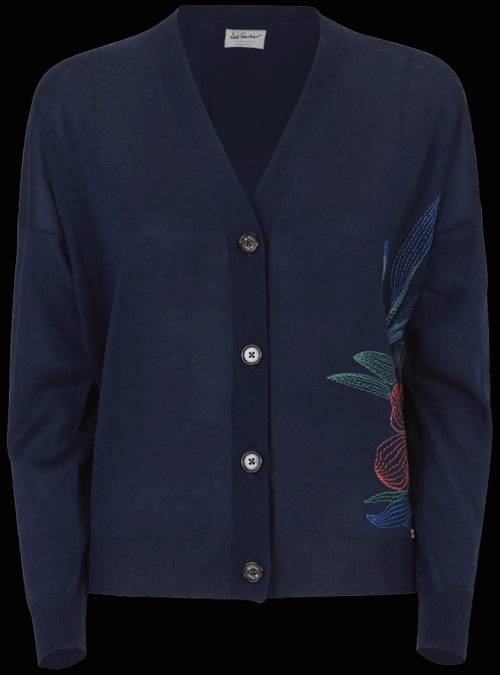- Große florale Stickerei an der Seite