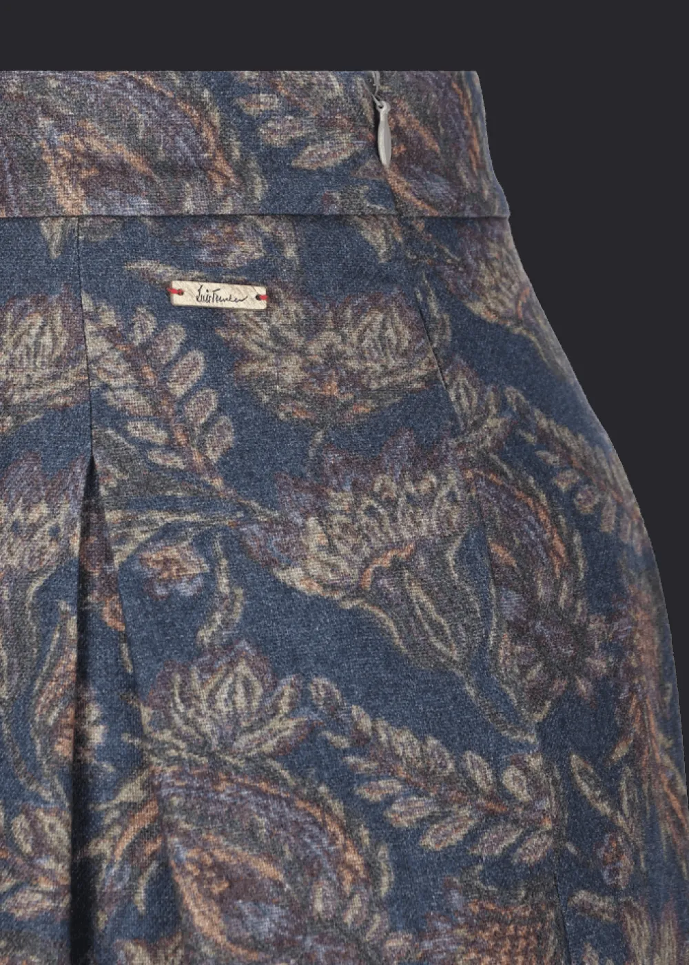 Besonderheiten: Angenehme Wollmischung mit Paisleyprint, elegante Kellerfalten, Logoplakette in Hornoptik links am Bund - Unser Model Chantal ist 1,78 m groß und trägt die italienische Größe 42.