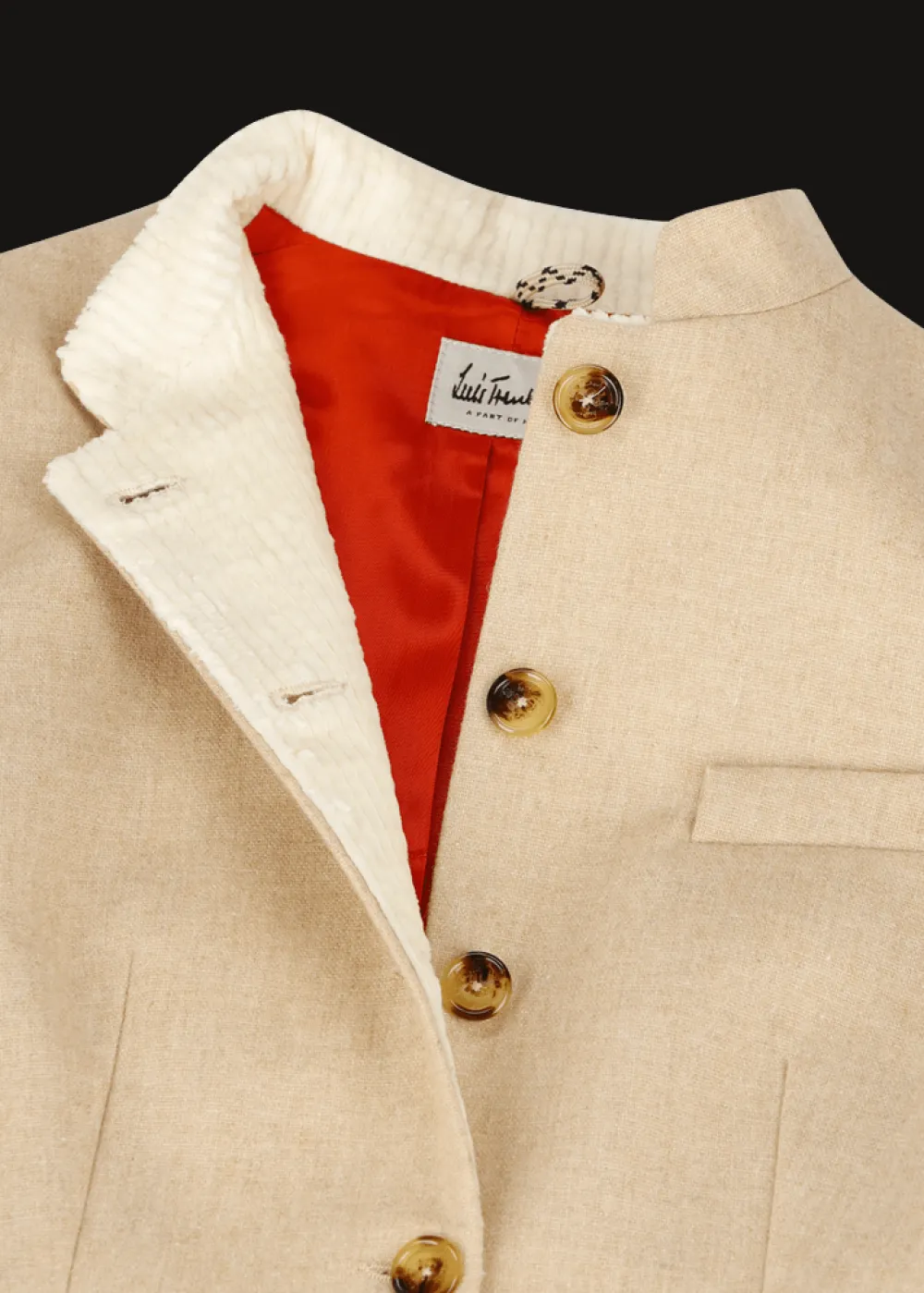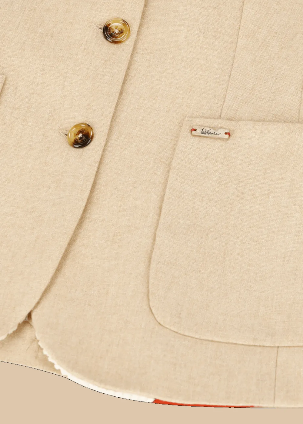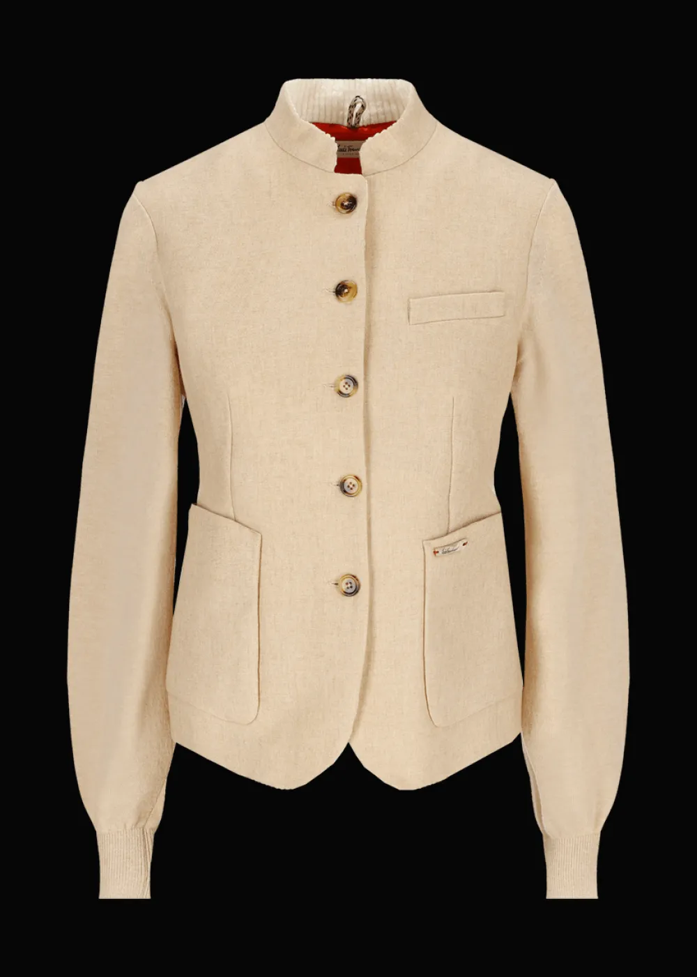 Herkunft: Stoff aus Italien - Besonderheiten: Futter in Kontrastfarbe, Logoplakette in Holzoptik an der linken Tasche, Strickärmel in Handarbeit und eigens für jeden einzelnen Blazer gefertigt