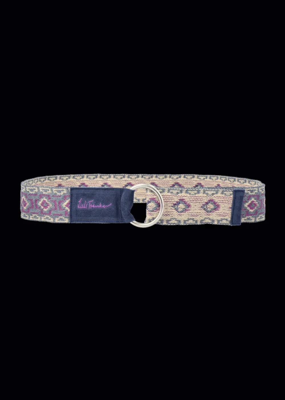 - Dieser Gürtel aus Baumwolle mit gewebtem, exklusiv für Luis Trenker designtem Ethnomotiv wird mit zwei metallischen Ringen geschlossen. Der Wildlederbesatz mit gesticktem Luis Trenker Logo in Kontrastfarbe ist ein zusätzliches, hochwertiges Detail.