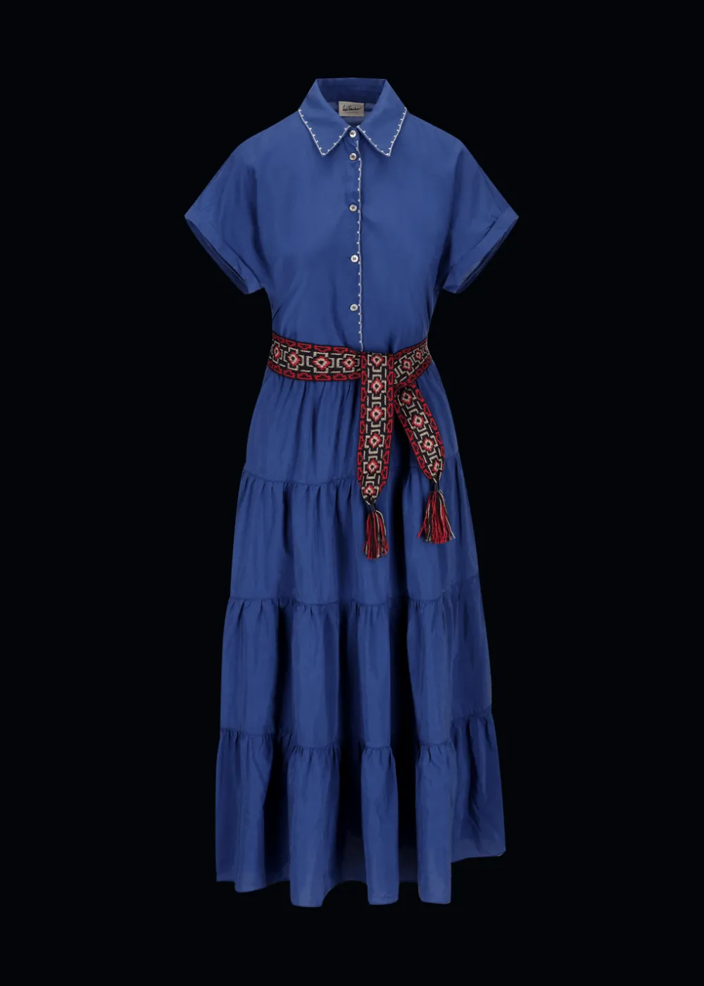 - Dieses lange Hemdblusenkleid im Regular Fit mit kurzen Ärmeln und französischem Kragen besteht aus einer stückgefärbten Seiden-Baumwoll-Mischung. Das Oberteil ist anliegend, der gerüschte Rock hingegen leicht ausgestellt. Die gestickte Bordüre in Kontrastfarbe entlang des Kragens und der Knopfleiste, die echten Perlmuttknöpfe und der Stoffgürtel im Ethno-Stil machen dieses Kleid zu einem besonderen Hingucker.