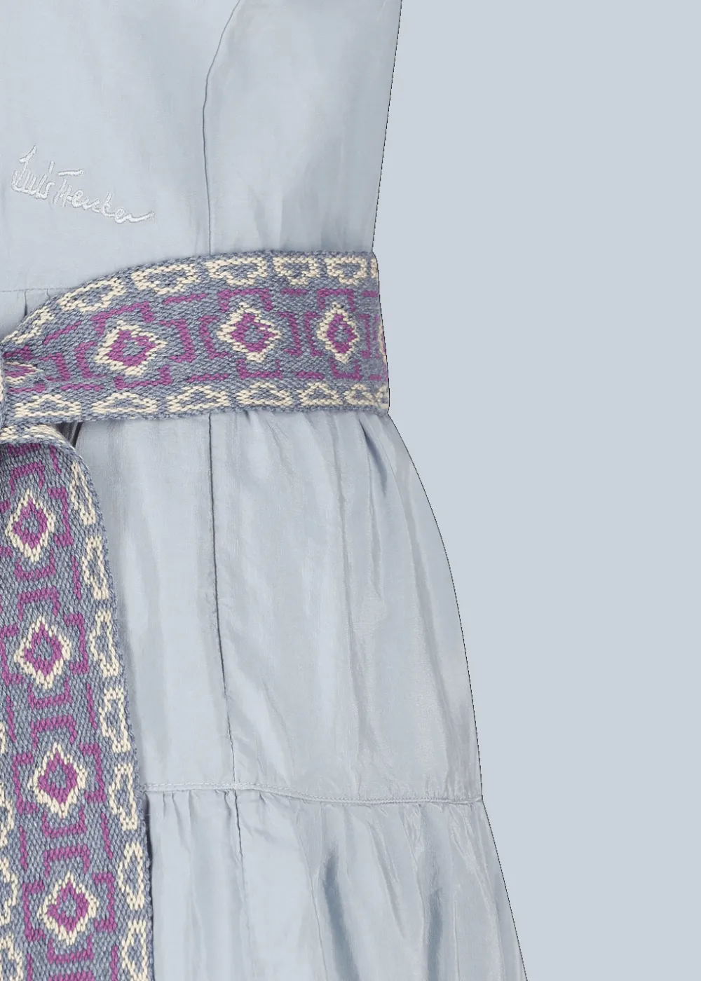 - Dieses lange Hemdblusenkleid im Regular Fit mit kurzen Ärmeln und französischem Kragen besteht aus einer stückgefärbten Seiden-Baumwoll-Mischung. Das Oberteil ist anliegend, der gerüschte Rock hingegen leicht ausgestellt. Die gestickte Bordüre in Kontrastfarbe entlang des Kragens und der Knopfleiste, die echten Perlmuttknöpfe und der Stoffgürtel im Ethno-Stil machen dieses Kleid zu einem besonderen Hingucker.