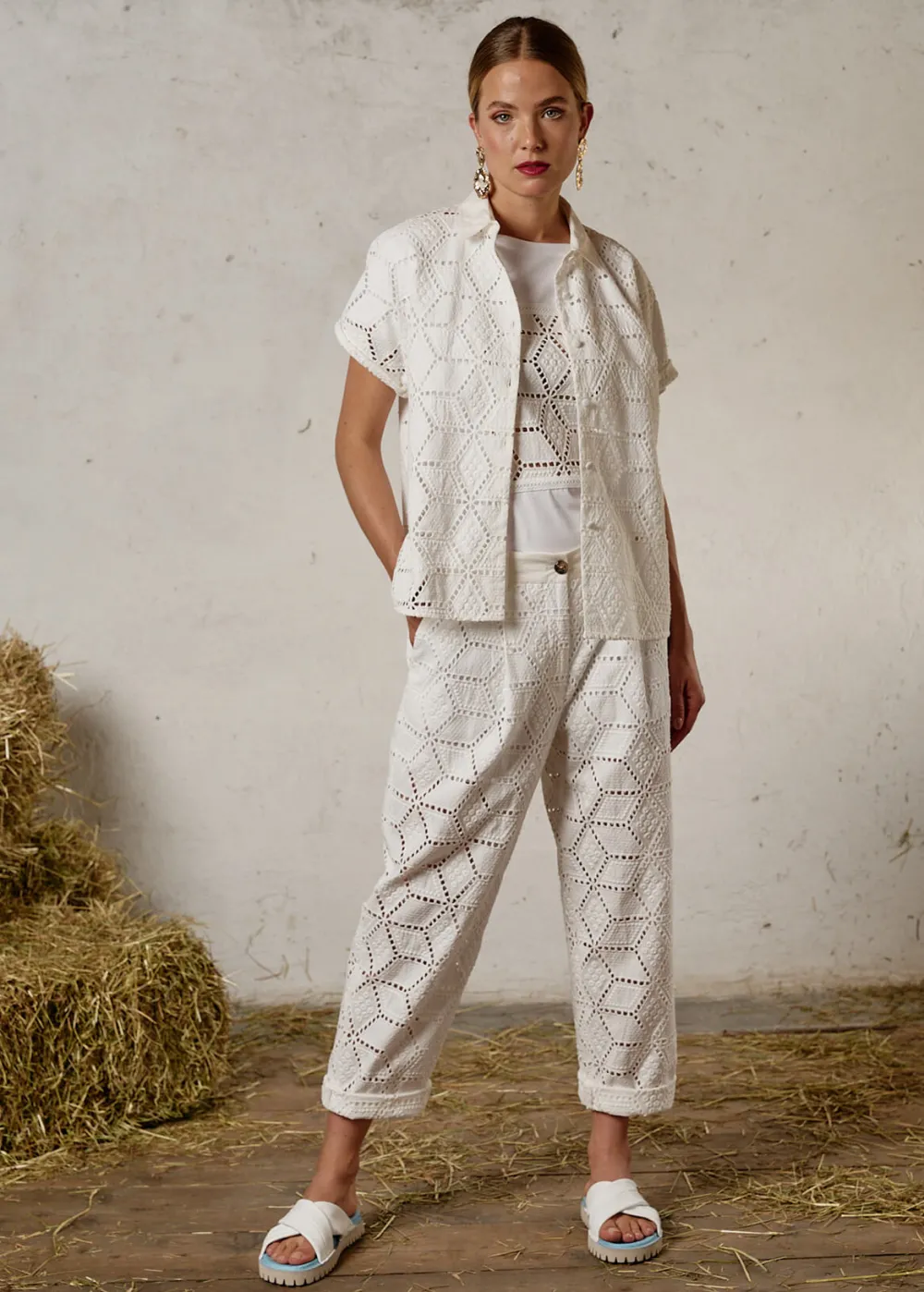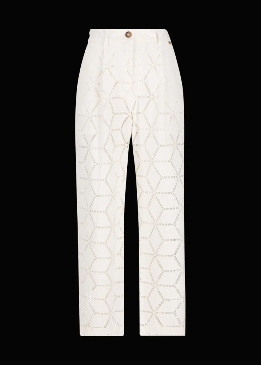 - Diese knöchellange Karottenhose im Comfort Fit mit geradem Bein und Bundfalten besteht aus reiner Baumwolle, verarbeitet zu einer eleganten Sangallo-Spitze. Sie ist bis zur Hälfte des Oberschenkels mit einem leichten Baumwollstoff gefüttert, wodurch sie blickdicht ist, aber dennoch sommerlich luftig bleibt.