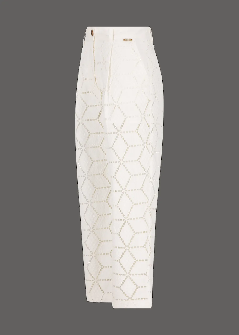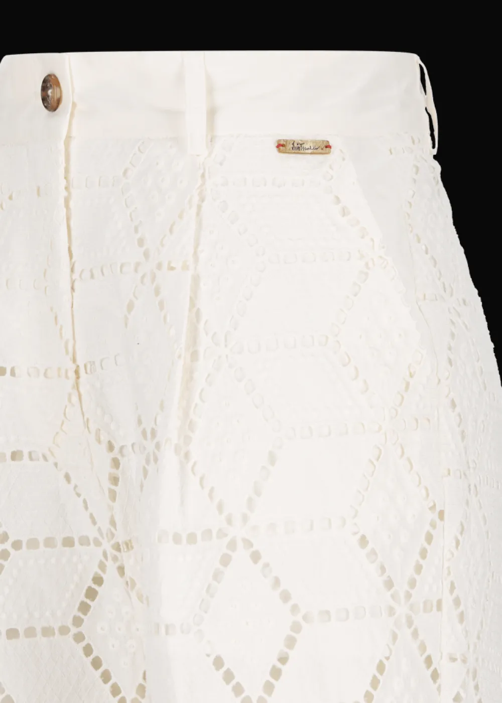 Taschen: Zwei seitliche Eingrifftaschen - Besonderheiten: Elegante Sangallo-Spitze für einen besonders femininen Look, bis zur Hälfte des Oberschenkels mit Baumwollstoff gefüttert, Bundfalten, Logoplakette in Hornoptik links am Bund