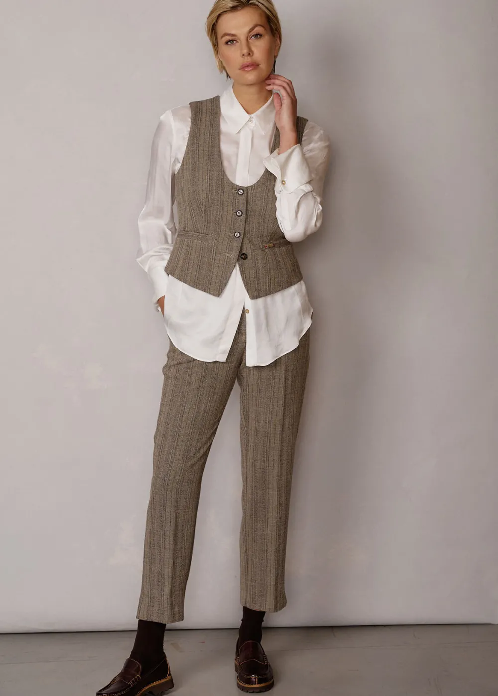 - Diese knöchellange Hose im Regular Fit mit geradem Bein und Bügelfalte besteht aus Baumwolle und Schurwolle, verarbeitet zu einem hochwertigen Jacquard mit Fischgrätmuster. Ihr verdeckter Verschluss und ihre Seitenschlitze am Saum unterstreichen ihre zeitlos-elegante Ausstrahlung.