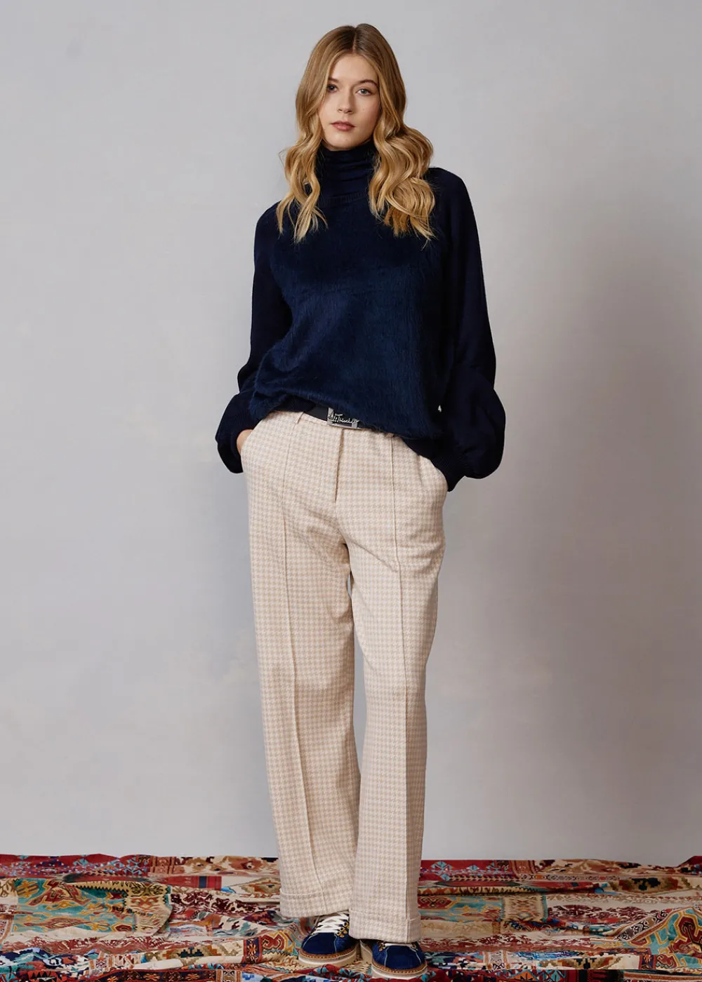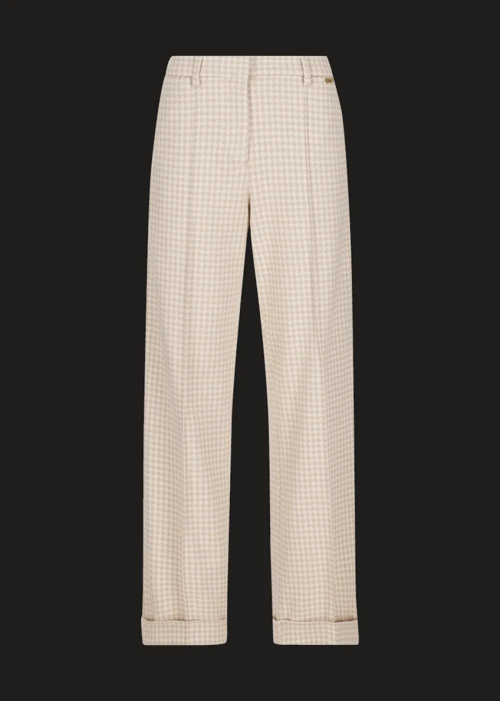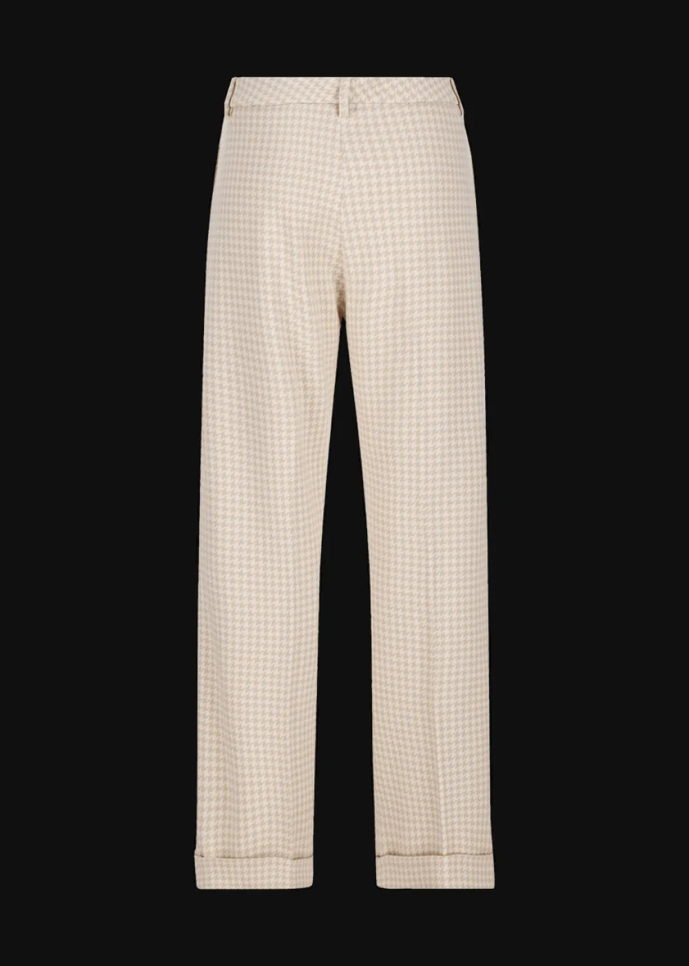 - Diese lange Hose im Comfort Fit mit geradem, weitem Bein und Saumumschlag besteht aus einem angenehmen Baumwoll-Viskose-Mix mit Hahnentrittmuster.