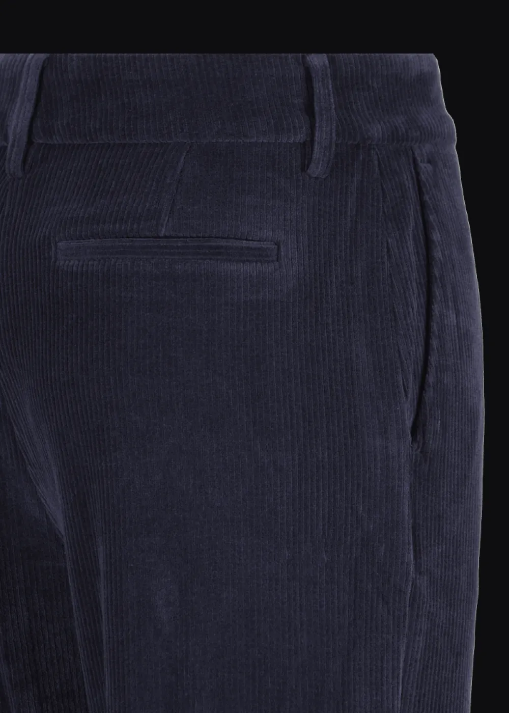 Taschen: Zwei seitliche Eingrifftaschen und zwei Paspeltaschen hinten - Besonderheiten: Knöpfe aus Bio-Horn, besonders komfortables Stretchgewebe, seitlicher Schlitz am Saum