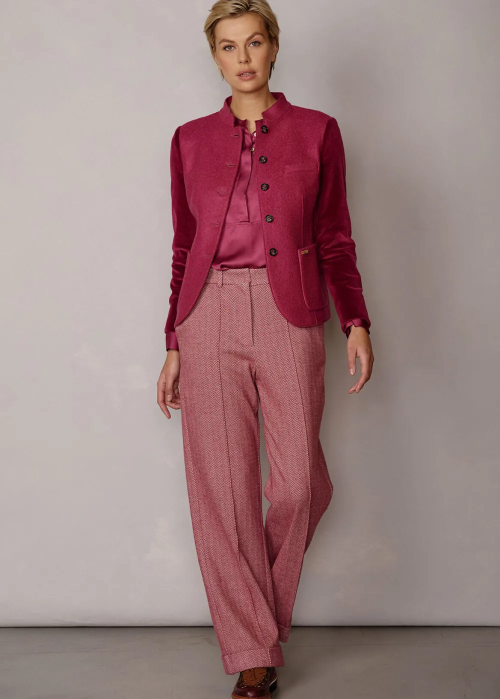 Besonderheiten: Hochwertiger Baumwoll-Viskose-Jersey mit Fischgrätmuster, extra Tragekomfort, reliefartig hervorstehende Mittelnaht, Saumumschlag, Logoplakette in Hornoptik links am Bund - Unser Model Chantal ist 1,78 m groß und trägt die italienische Größe 42.