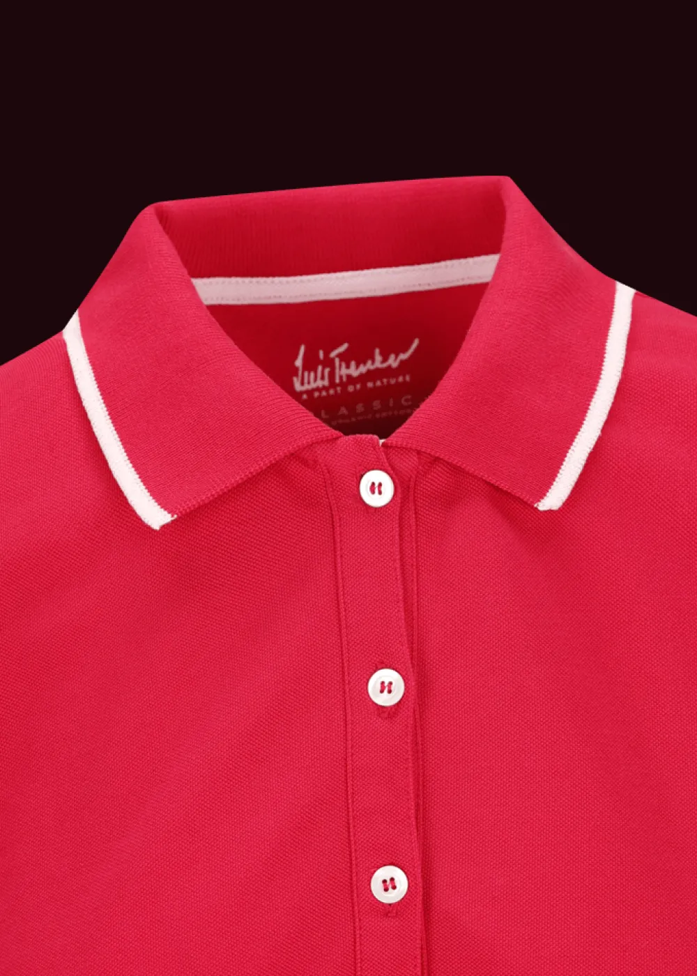 Kragen: Polo-Kragen mit kurzer Knopfleiste - Besonderheiten: Bio-Baumwolle, elastischer Rippstrickbund am Ärmel, Farbkontrast am Kragen