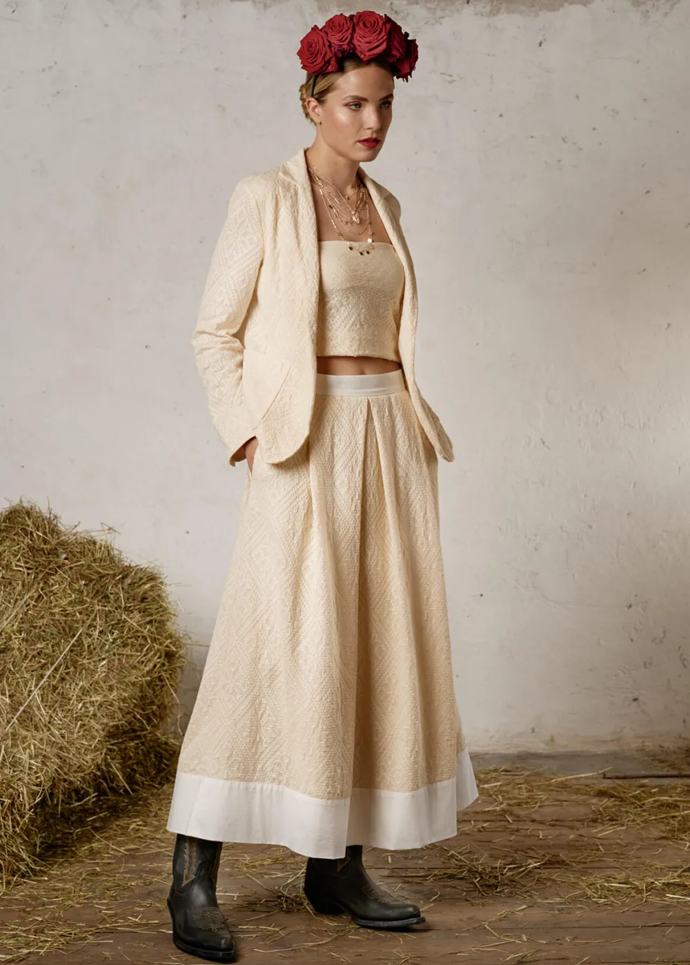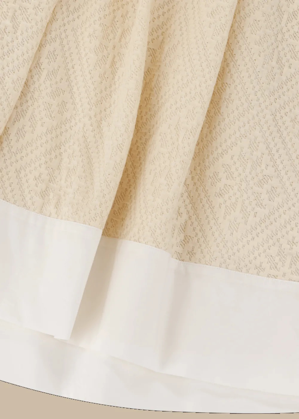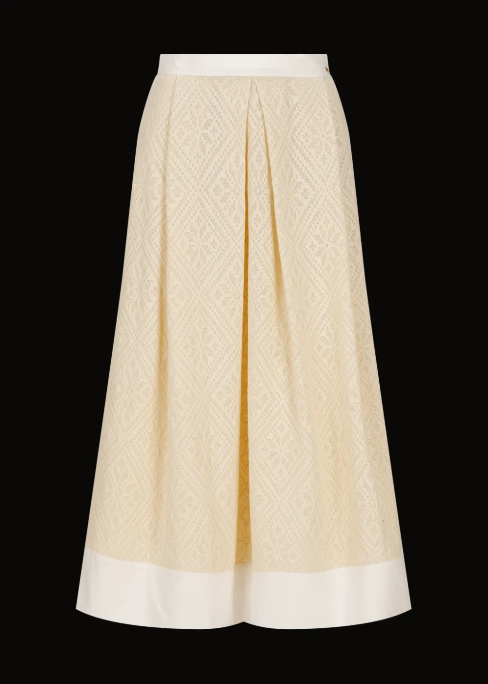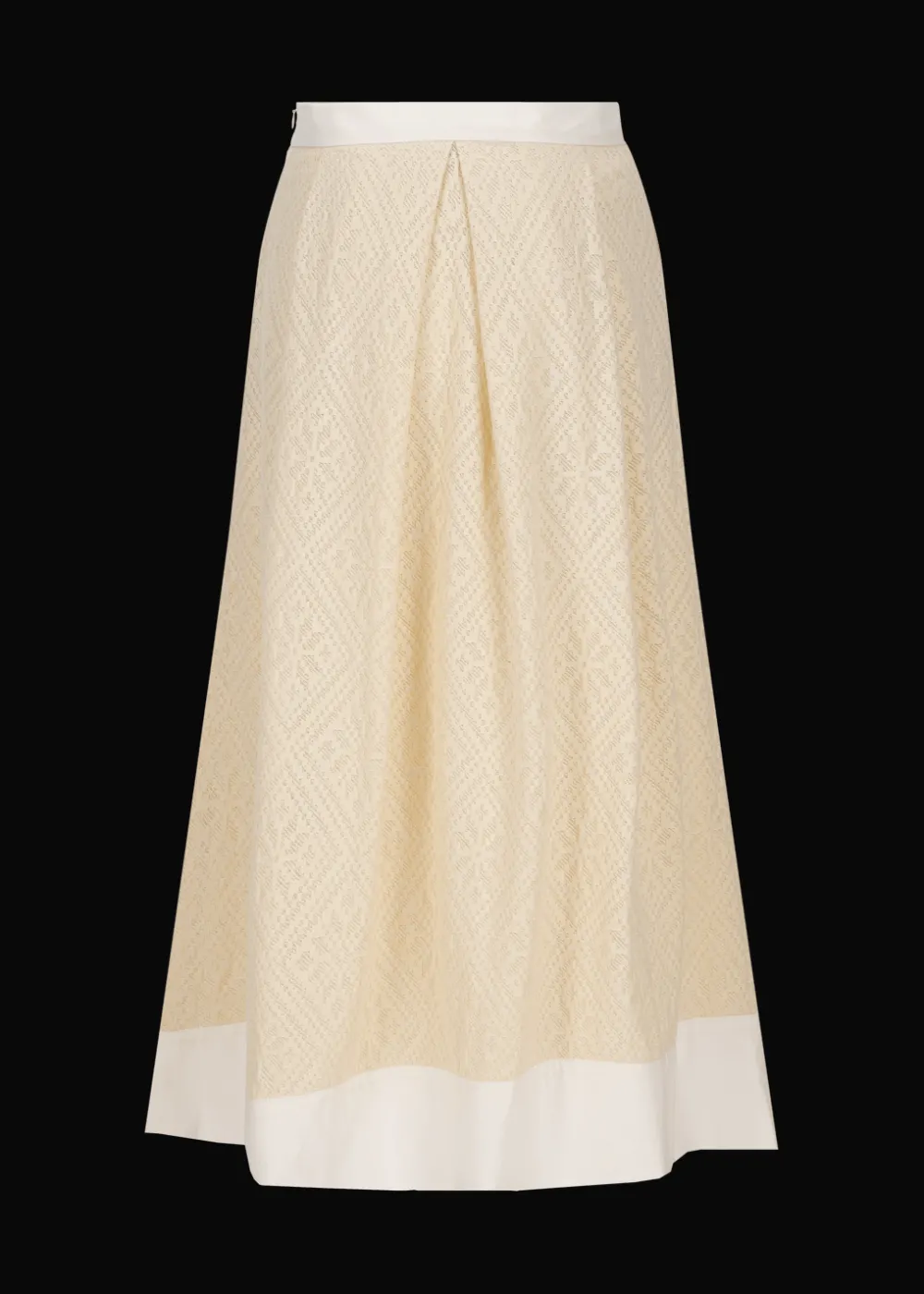 - Dieser lange, leicht ausgestellte Rock im Regular Fit mit Kellerfalten und seitlichem Reißverschluss besteht aus leichtem Baumwolljersey, verarbeitet zu einer zarten Spitze. Sowohl der Bund, als auch der Saum sind in robuster Baumwollpopeline verarbeitet.