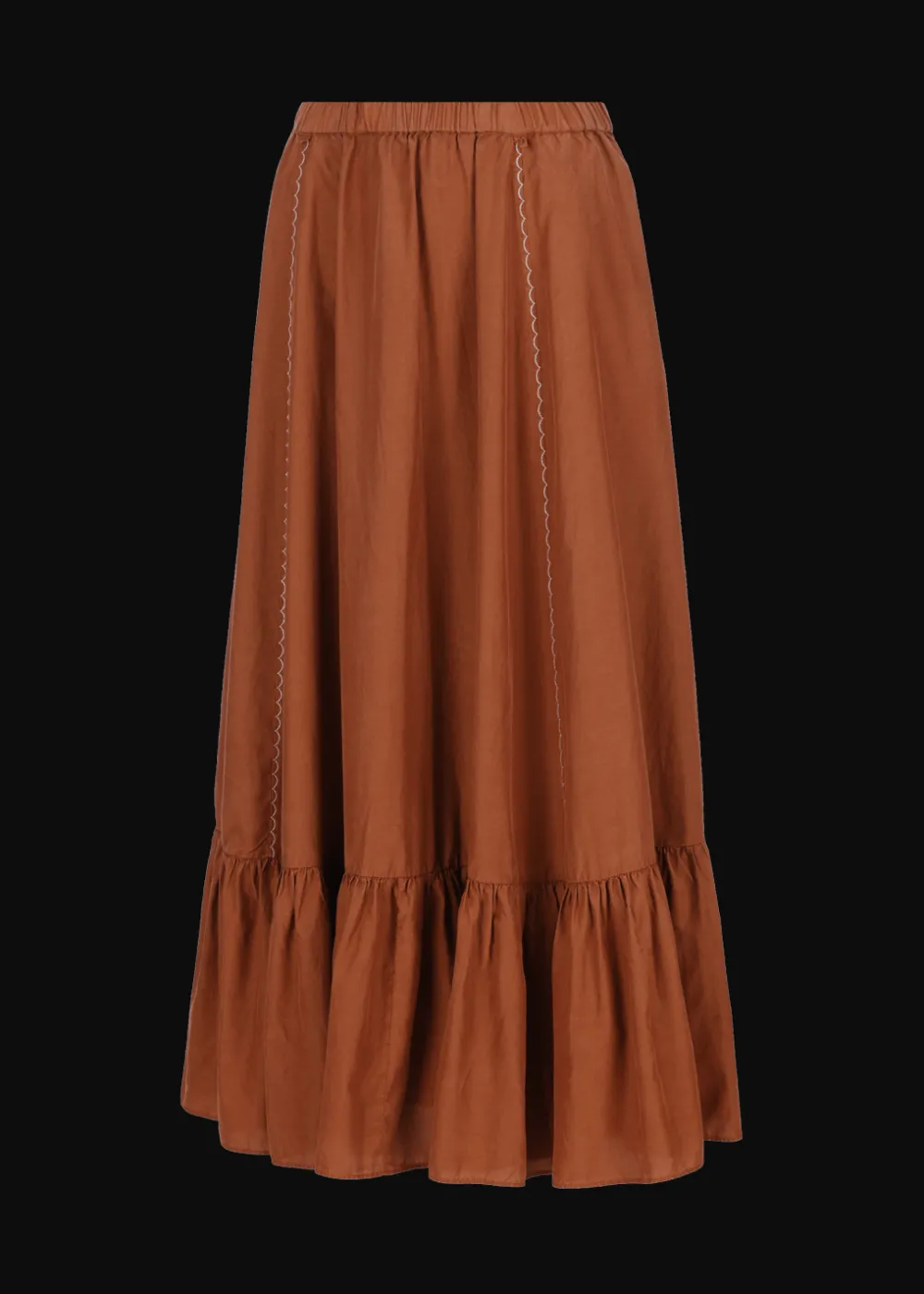 - Dieser lange, leicht ausgestellte Rock im Regular Fit mit elastischem, gerafftem Bund und Rüschensaum besteht aus einer angenehmen Mischung aus Seide und Baumwolle. Die schmalen, abnehmbaren Träger und die gestickte Bordüre an den Seiten verleihen ihm die nötige Extravaganz.