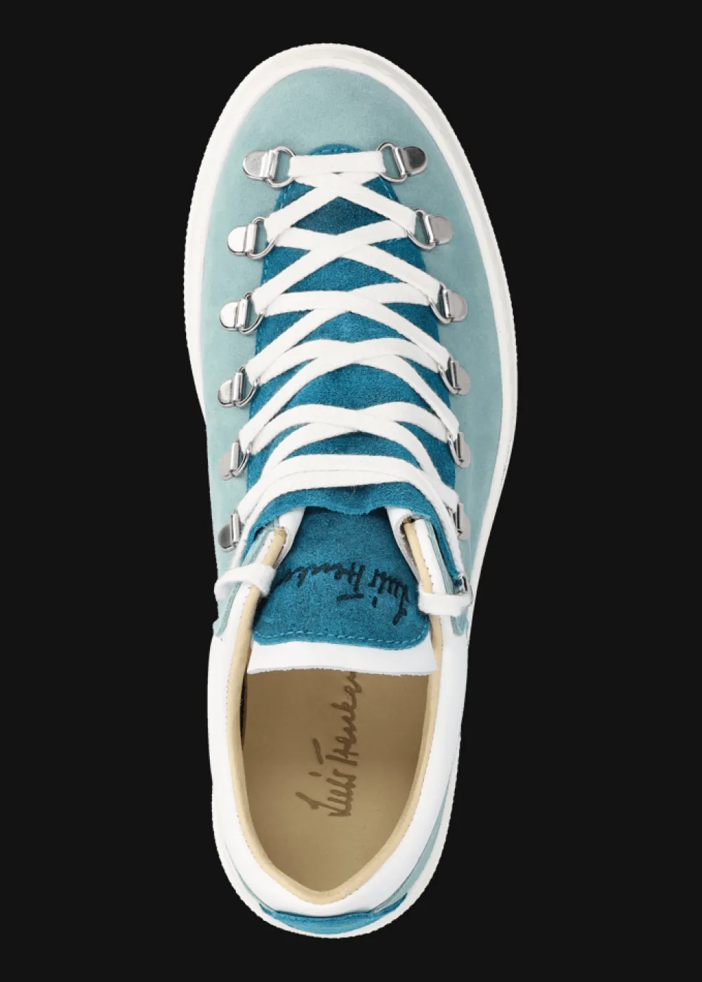 - Dieser Sneaker mit Plateausohle wurde aus feinstem Glatt- und Wildleder in Italien von Hand gefertigt. Die metallischen Ösen im Bergschuh-Stil verleihen ihm alpinen Charme, die weiche Leder-Innensohle sorgt für unvergleichlichen Komfort.