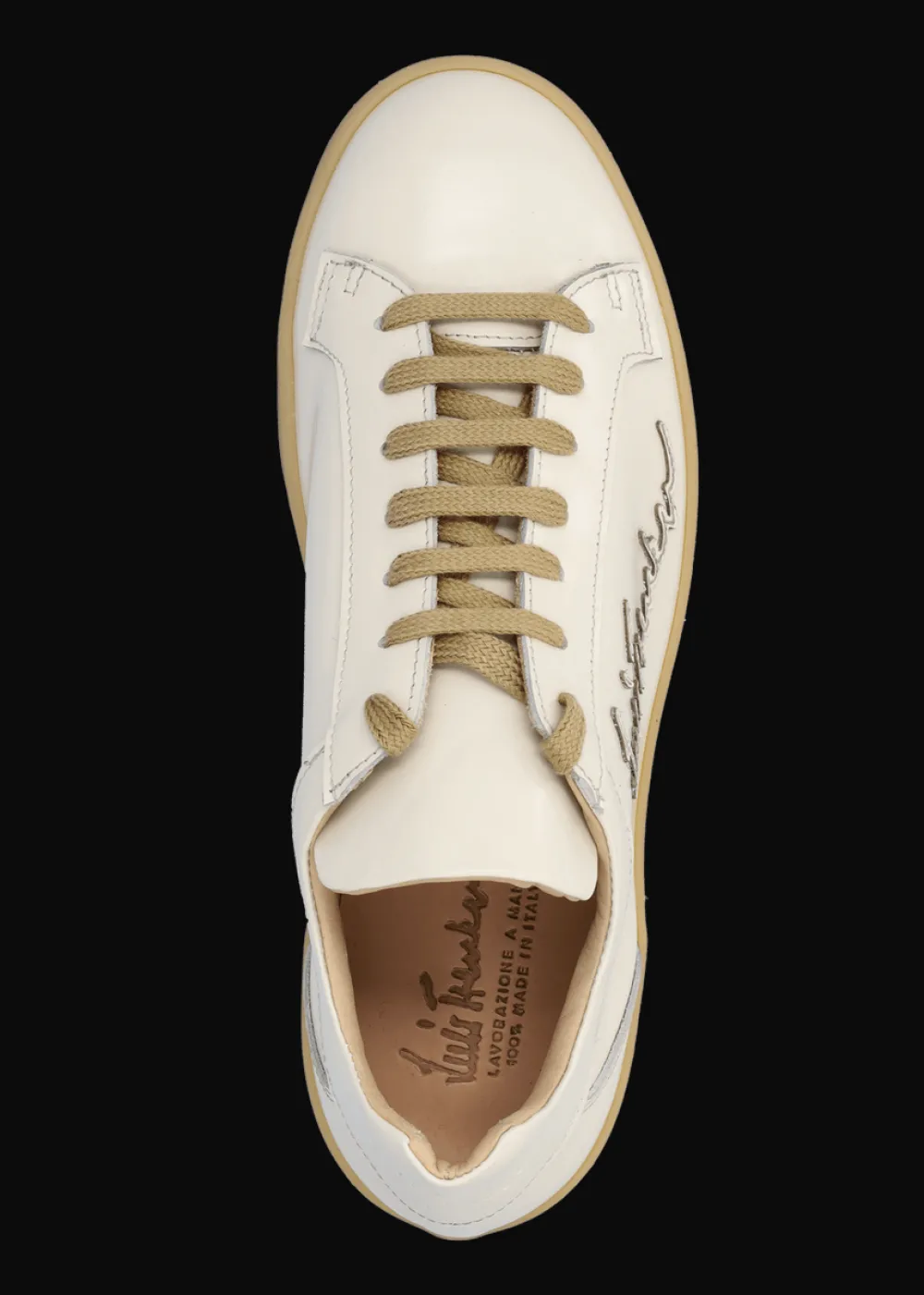 - Dieser handgefertigte Sneaker aus echtem Glattleder verleiht Deinem Look den nötigen Glanz. Die leicht erhöhte Gummisohle und die Innensohle aus weichem Leder sorgen für ganztägigen Komfort.