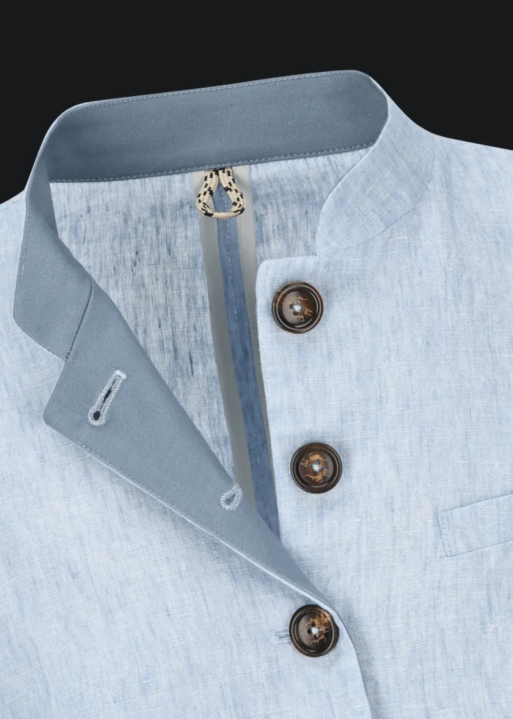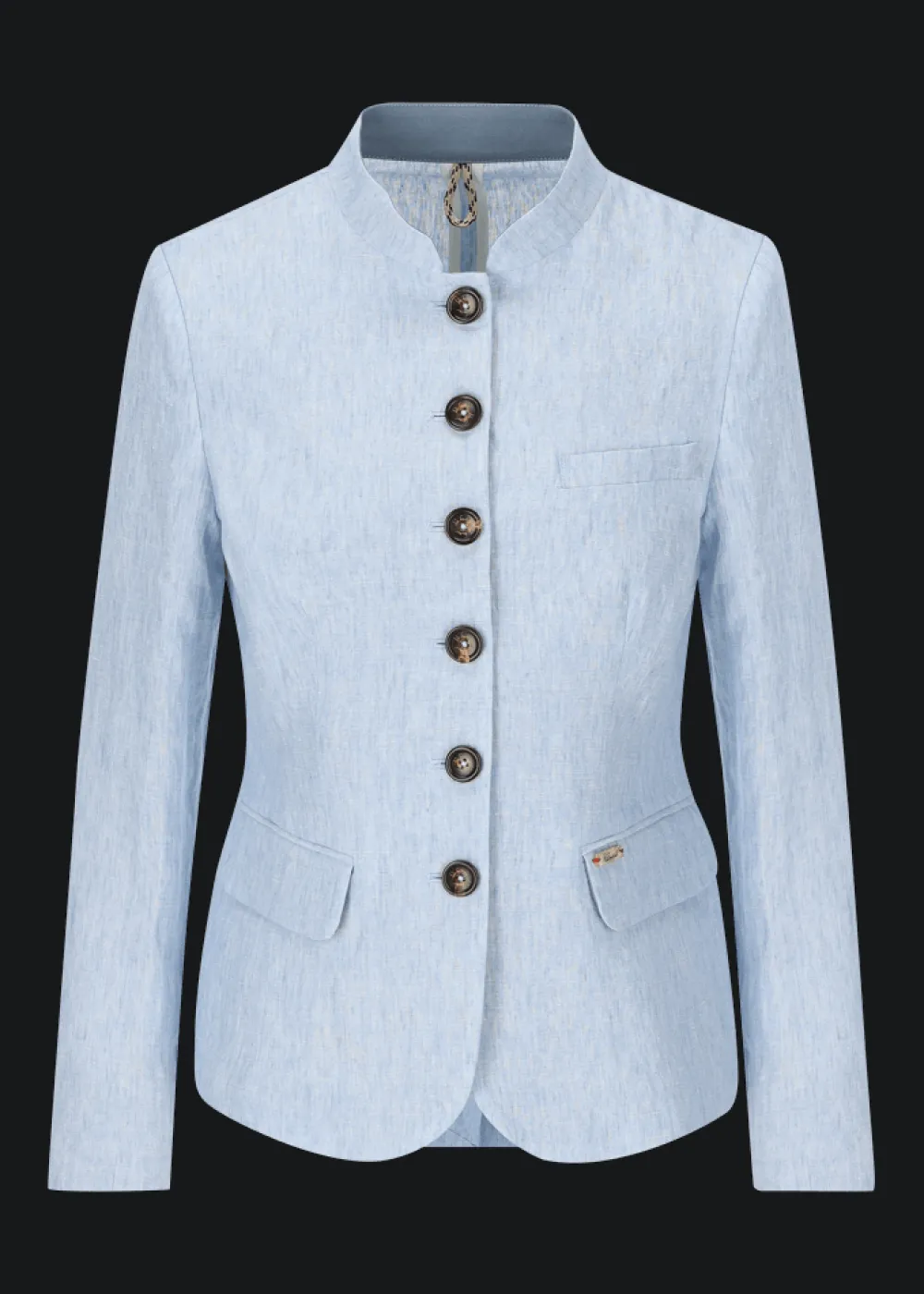 - Dieser Blazer im Regular Fit mit Stehkragen besteht aus reinem Leinen und ist ein fester Bestandteil jeder Luis Trenker Kollektion – und das aus gutem Grund! Denn er strahlt feminine Eleganz aus, betont die Figur und wertet jedes Outfit im Handumdrehen auf.