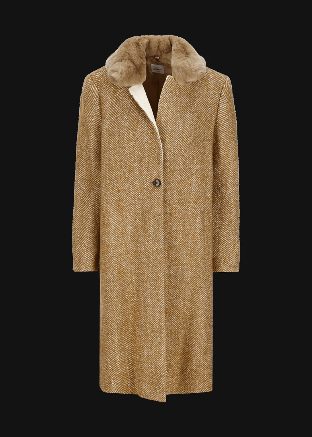 - Dieser gefütterte Mantel im Regular Fit mit geschlossenem Reverskragen besteht aus einer angenehmen Wollmischung mit Fischgrätmuster. Er zeichnet sich durch seinen abnehmbaren Kaninchenpelzkragen, seine cleane One-Button-Front und die praktischen Druckknöpfe an der Innenseite aus.