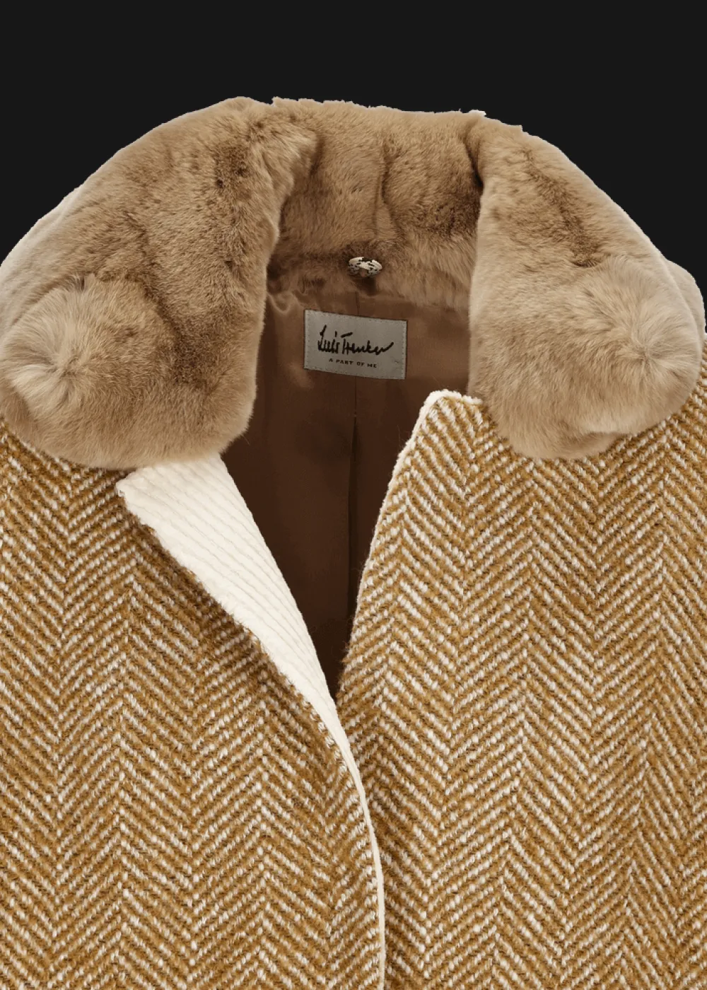 Herkunft: Stoff aus Italien - Besonderheiten: Abnehmbarer Kragen aus Kaninchenpelz, Logoplakette in Holzoptik an der linken Tasche