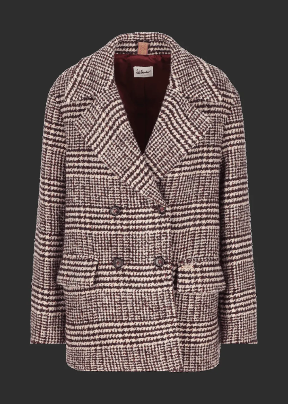 Besonderheiten: Angenehmer Wollmix mit Bouclé-Effekt und Prince of Wales Muster, Cord als Kontraststoff an der Unterseite von Kragen und Patten, sowie innen an den Manschetten, personalisiertes Jacquardband als Jackenaufhänger, Logoplakette in Hornoptik an der linken Tasche