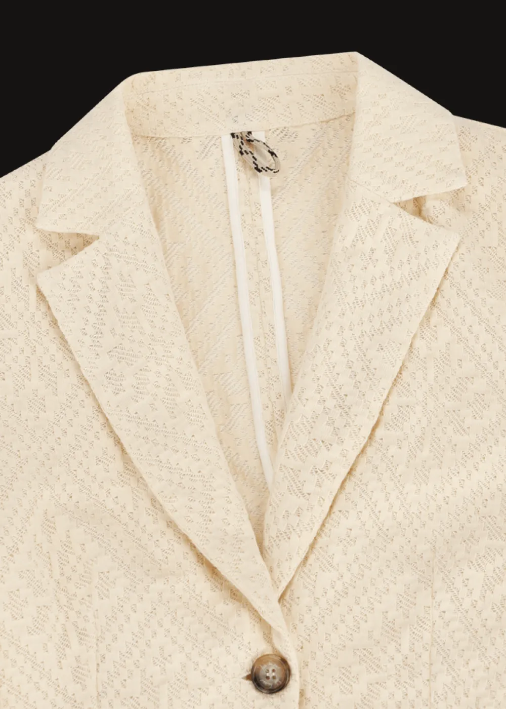 - Dieser ungefütterte Blazer im Regular Fit mit Reverskragen besteht aus leichtem Baumwolljersey, verarbeitet zu einer zarten Spitze. Der Verschluss mit nur einem Knopf aus echtem Bio-Horn, sowie der raffinierte Schlitz am Rücken unterstreichen sein feminines und elegantes Erscheinungsbild.