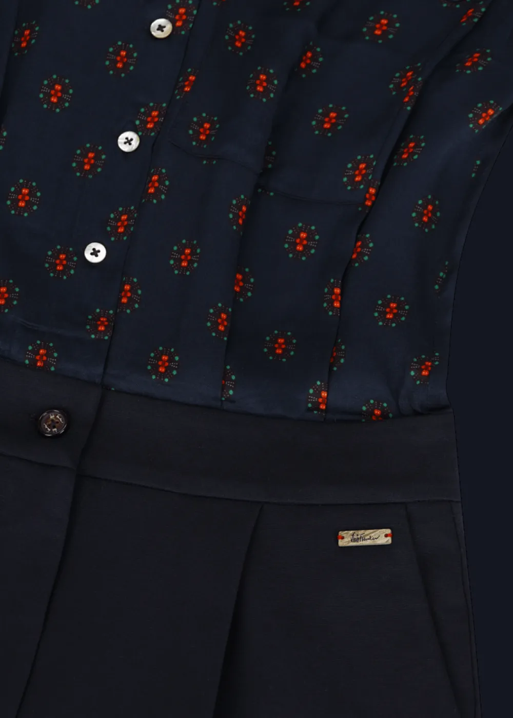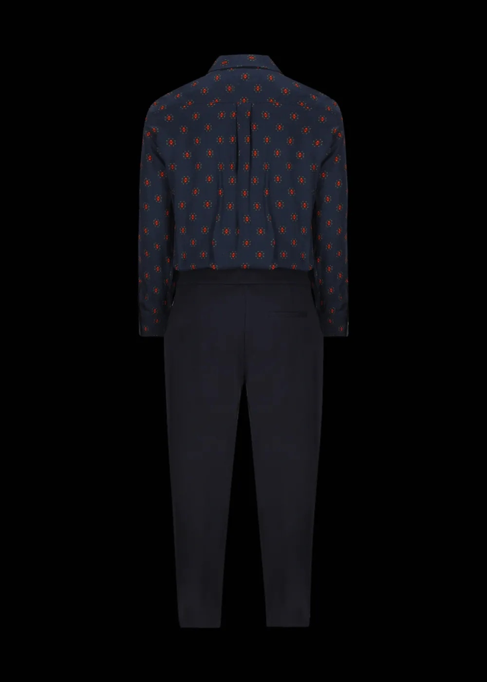 - Das Oberteil dieses Overalls im Comfort Fit besteht aus reiner Viskose mit Krawattenmuster, die Hose hingegen aus einem Mix aus Viskose, Nylon und Elasthan, der im Milano Stitch zu einem komfortablen Jersey verarbeitet wurde.