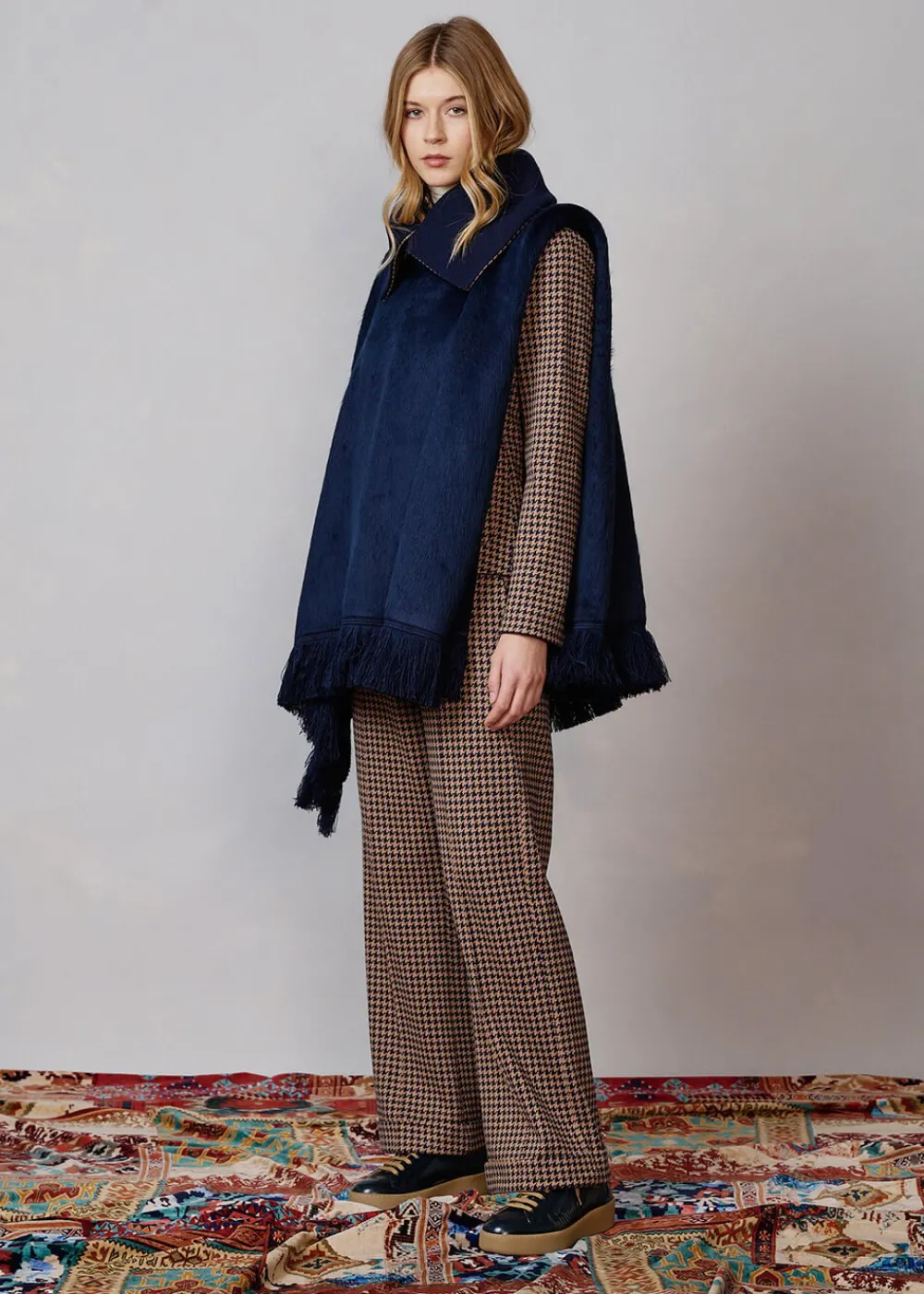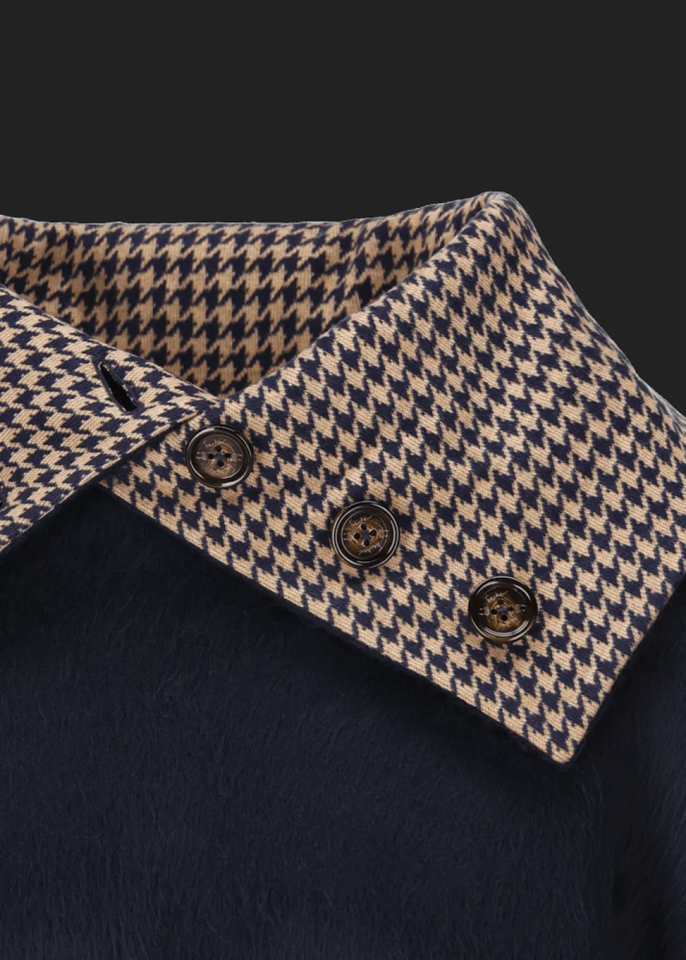 - Besonderheiten: Breiter Kragen aus weichem Jersey-Jacquard mit Hahnentrittmuster, mit Knopfverschluss