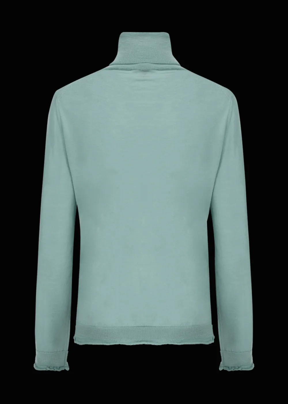 Besonderheiten: Reine Merinowolle in auserlesener Qualität, extra Tragekomfort, leicht gekräuselt an Saum und Bündchen - Unser Model Greta ist 1,77 m groß und trägt Größe S.