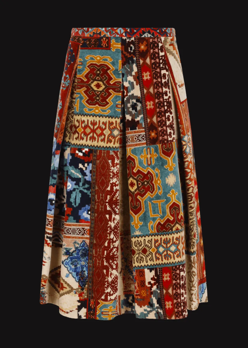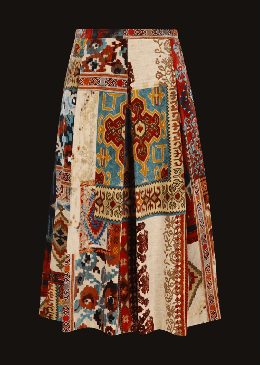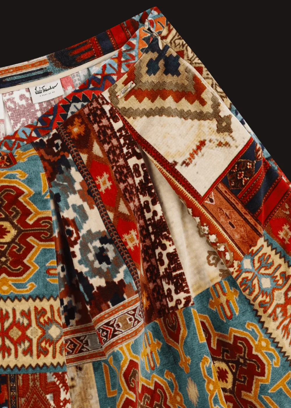 - Dieser ungefütterte, a-linienförmige Midirock im Comfort Fit besteht aus weichem Samt mit einem extravaganten und exklusiv für Luis Trenker designten Patchwork-Print.