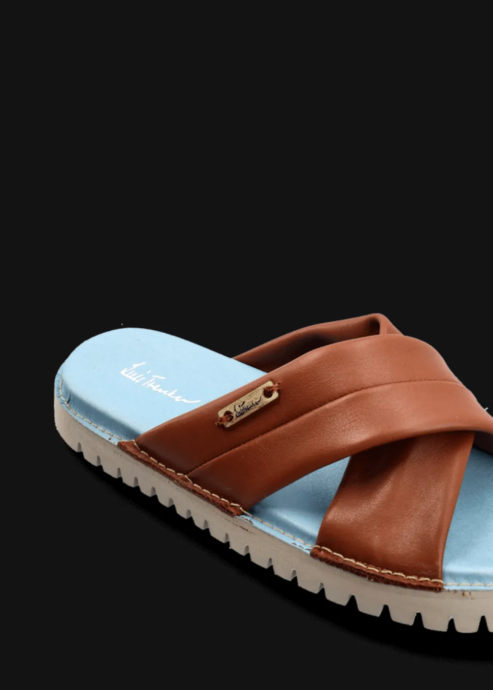 - Diese handgefertigte Sandale besteht aus weichem Glattleder und sorgt mit ihren zwei breiten, gekreuzten Riemen für perfekten Halt und Tragekomfort.