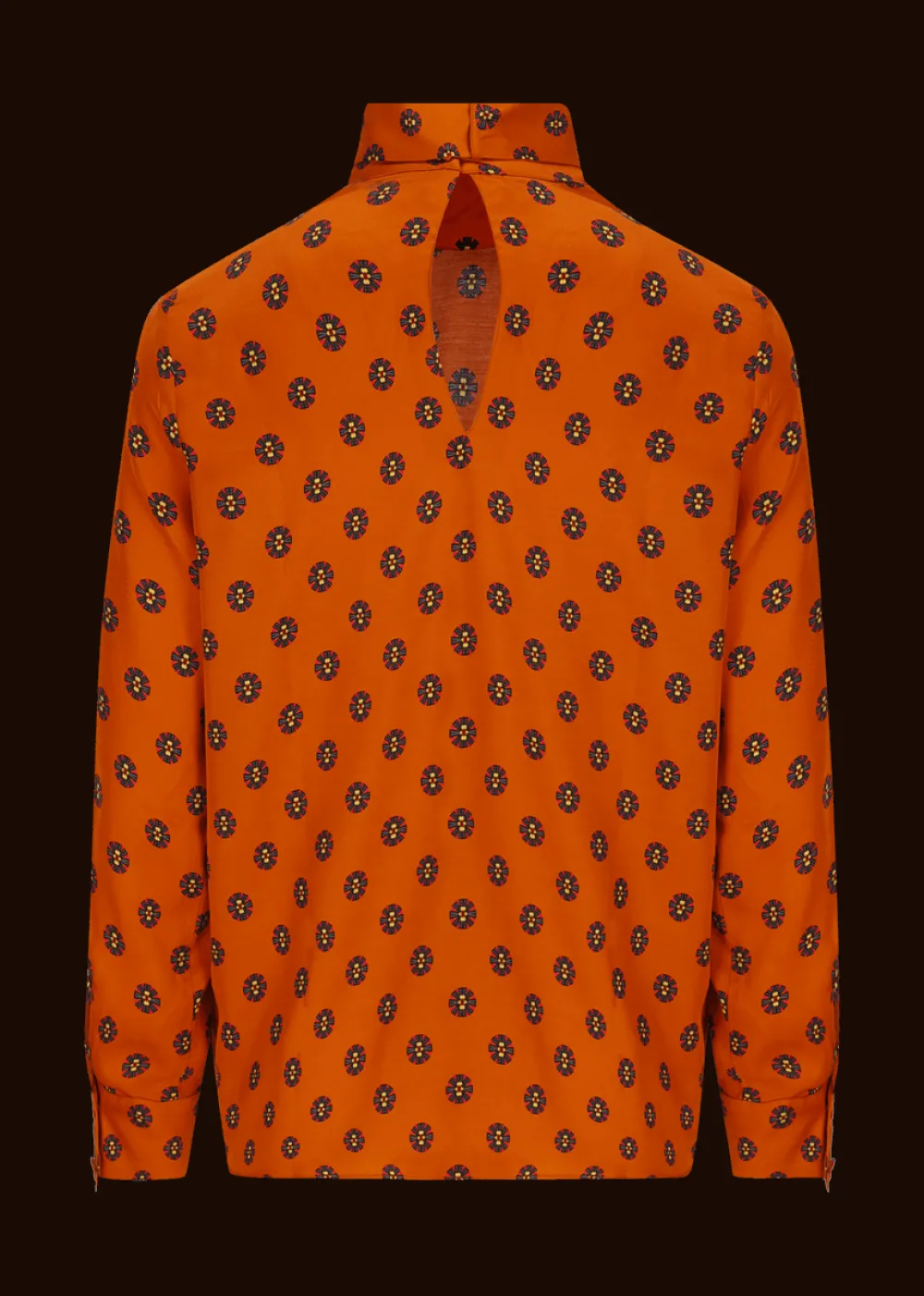 - Diese Schluppenbluse im Comfort Fit besteht aus reiner Viskose mit exklusiv für Luis Trenker entworfenem Print. An der Hinterseite des hohen Stehkragens befindet sich ein tropfenförmiger Schlitz mit verdecktem Knopfverschluss.