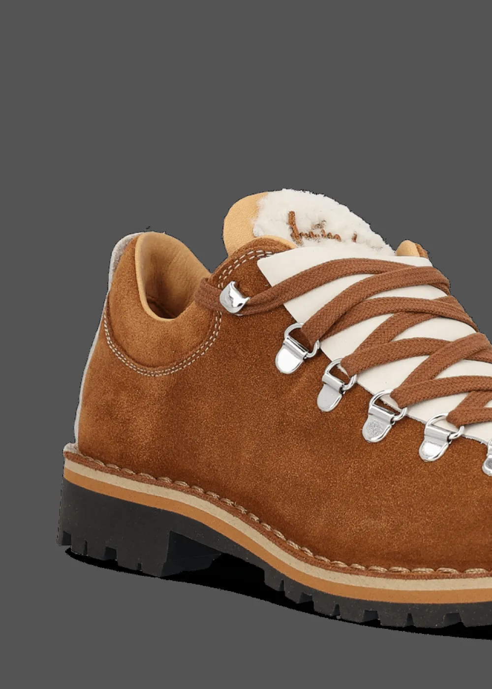 - Dieser rahmengenähte Schnürschuh aus Wildleder mit kuscheligem Schaffelleinsatz an der Zunge wird in einer Manufaktur in Italien von Hand gefertigt und bringt alpines Feeling in Deine Garderobe. Seine Vibramsohle und seine metallischen Ösen im Bergsteigerlook sind seine unverkennbaren Markenzeichen.