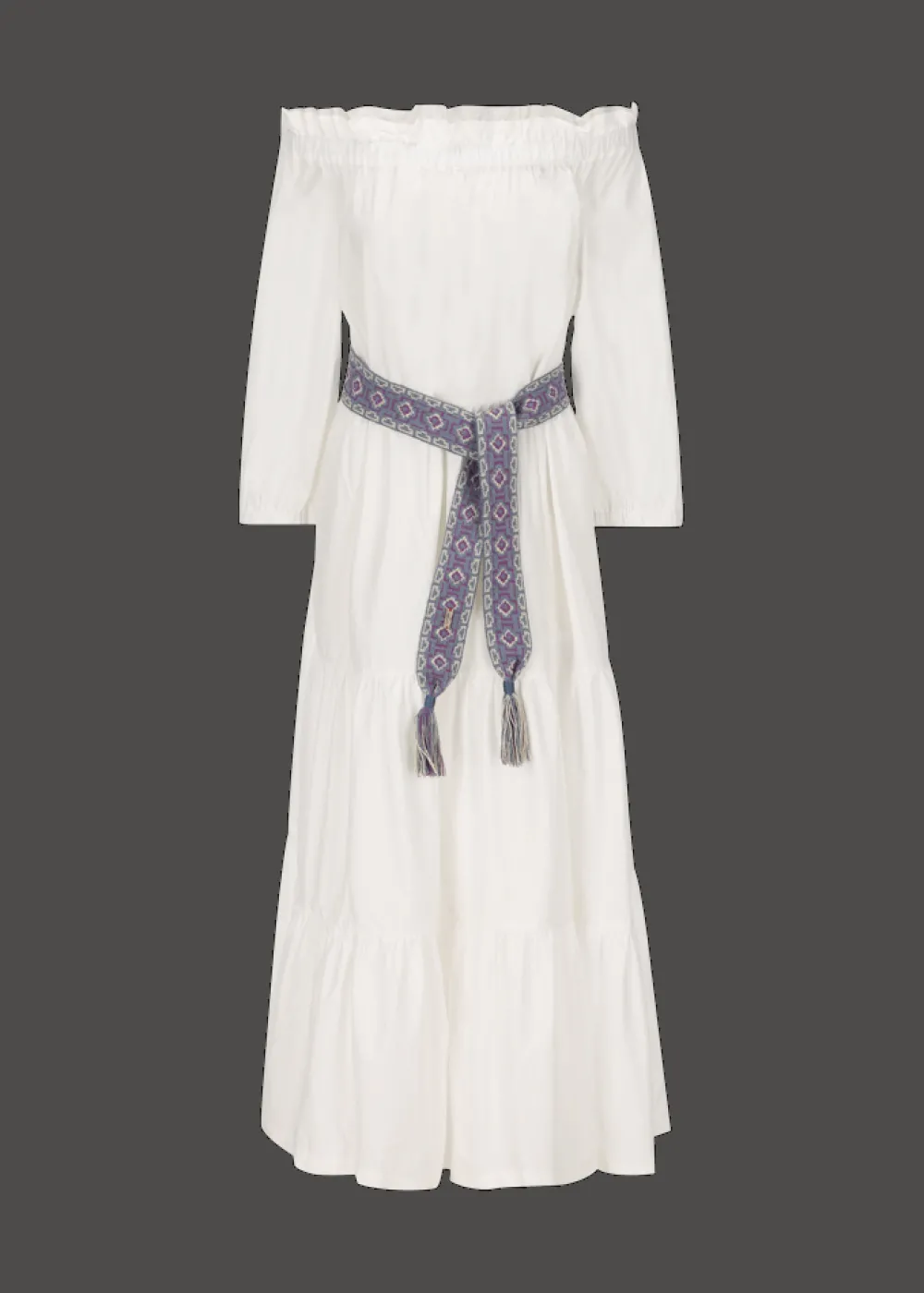 Taschen: Zwei seitliche Eingrifftaschen - Besonderheiten: Reine Baumwolle in besonders leichter Qualität, Ballonärmel mit elastischem Abschluss in Dreiviertellänge, abnehmbarer Stoffgürtel im Ethno-Look mit Quastenabschluss