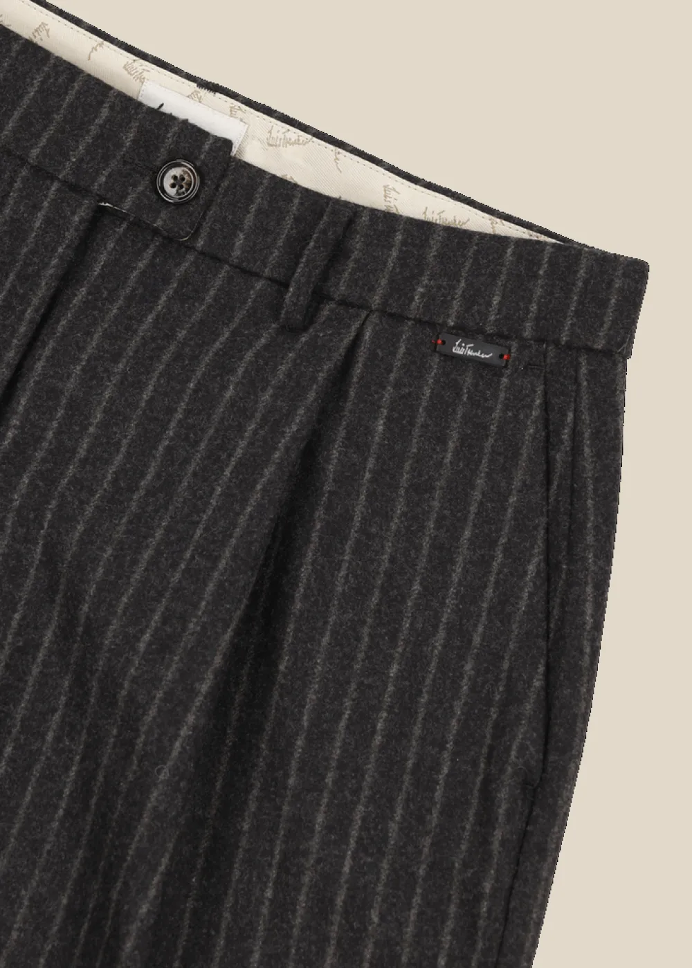 - Diese lange Marlenehose im Comfort Fit mit weitem Bein besteht aus reiner Schurwolle mit Nadelstreifen und strahlt pure Eleganz aus.